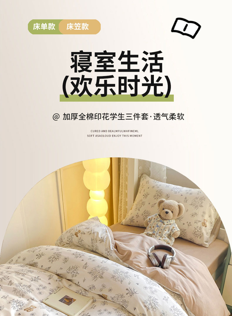 (总)宅部落 2025新款全棉三件套纯棉学生宿舍上下铺六件套,童年印记,蝶语-绿,腊肠狗,梦巴黎,快乐无限,可比熊,卡宾熊,熊猫派对,幸运七彩,奈斯草莓,文艺风范,绅士灰AA,绅士灰AB,灰细条纹,简居,蓝小格,温情北欧