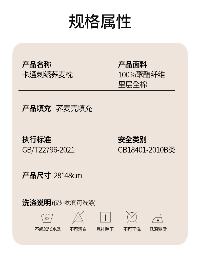 商品名称:(总)芯洲 2025新款荞麦枕凉感冰豆豆卡通学生可爱荞麦枕芯护颈枕头