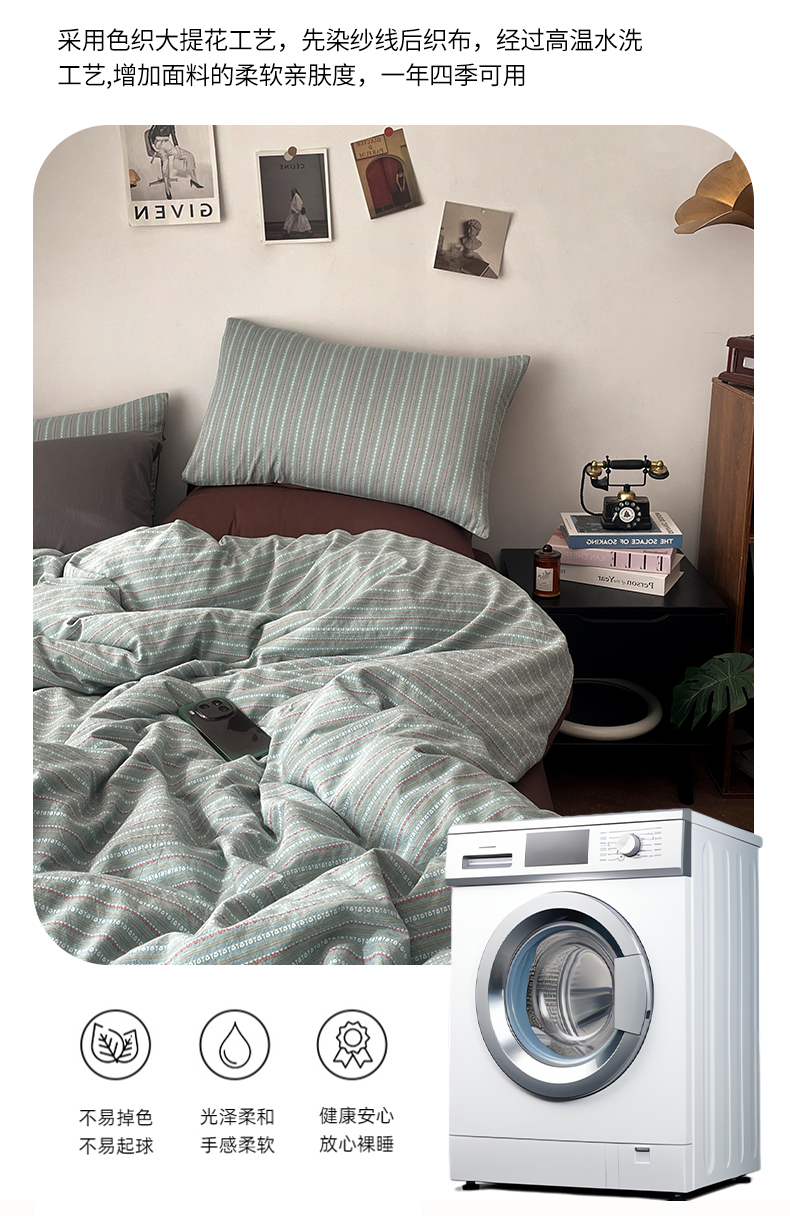 当前位置: 91家纺网 > 商品网购 > 床品套件 > 四件套 > 全棉普通四件套 > 羋多(原穆琪) 2025新款全棉色织提花人字斜四件套-美拉德系列 美拉德-烟雨青