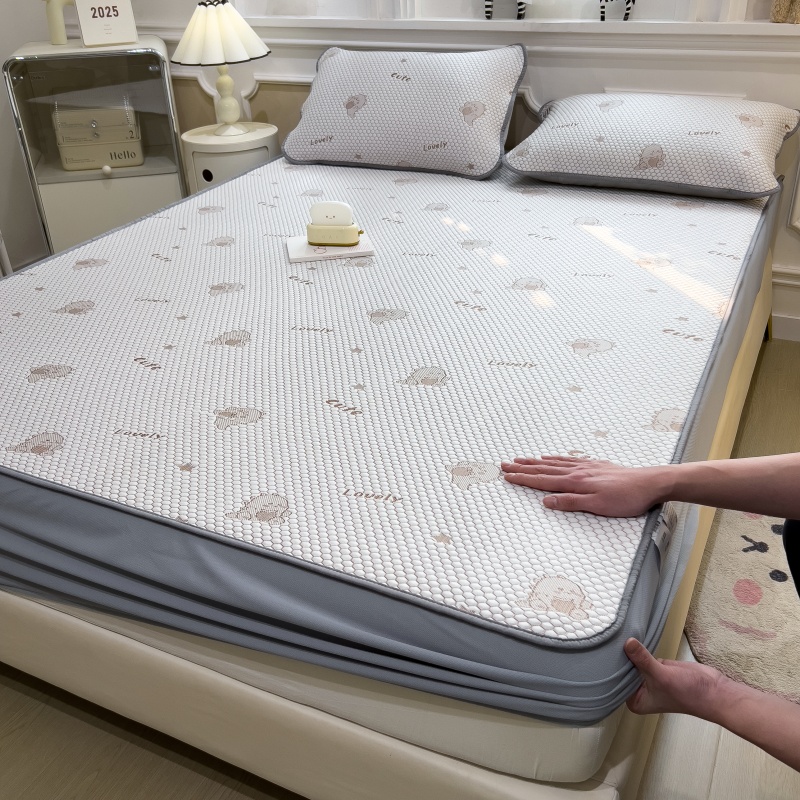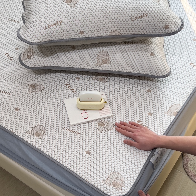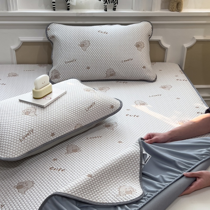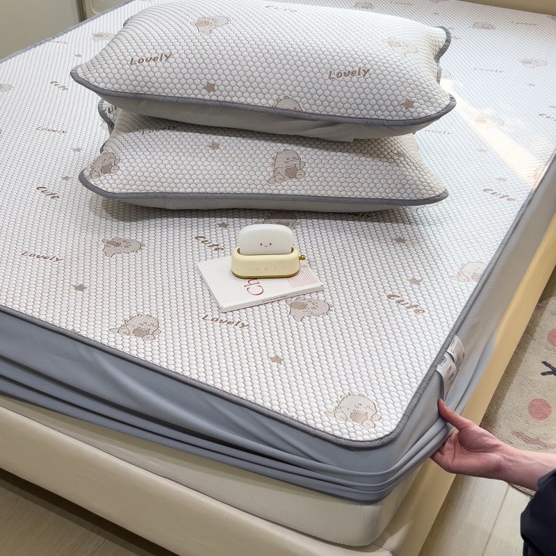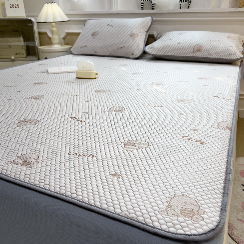 • 91家纺网 家纺一手货源 找家纺 孩子王家纺 2025新款冰丝席提花冰豆豆床单床笠-抱抱龙系列 抱抱龙-岩硕咖床笠