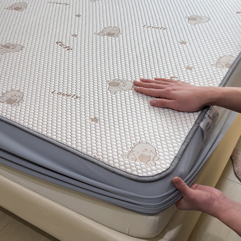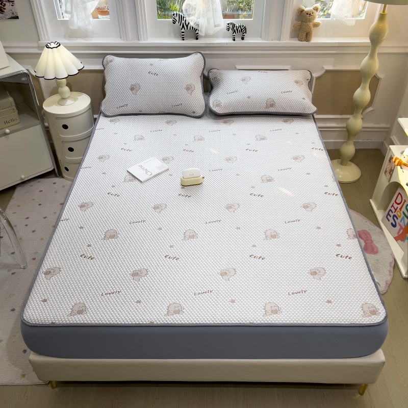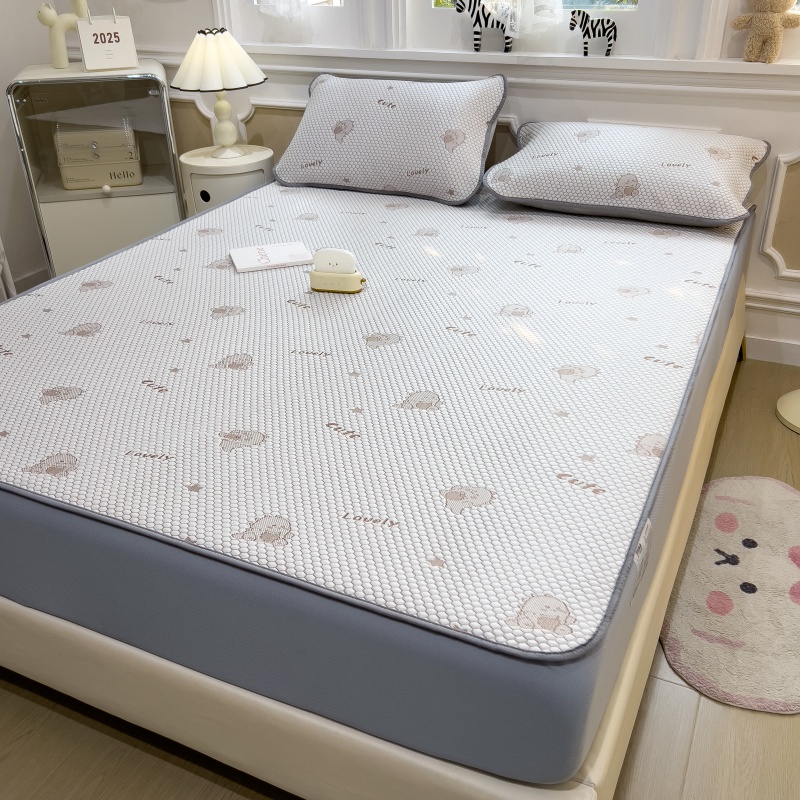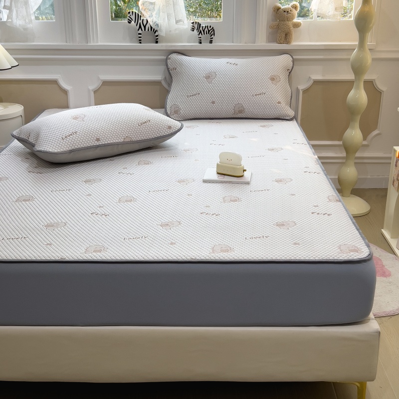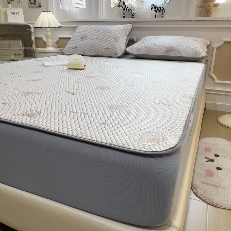 • 91家纺网 家纺一手货源 找家纺 孩子王家纺 2025新款冰丝席提花冰豆豆床单床笠-抱抱龙系列 抱抱龙-岩硕咖床笠