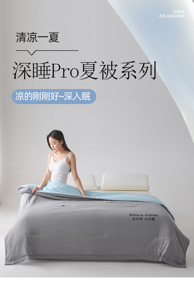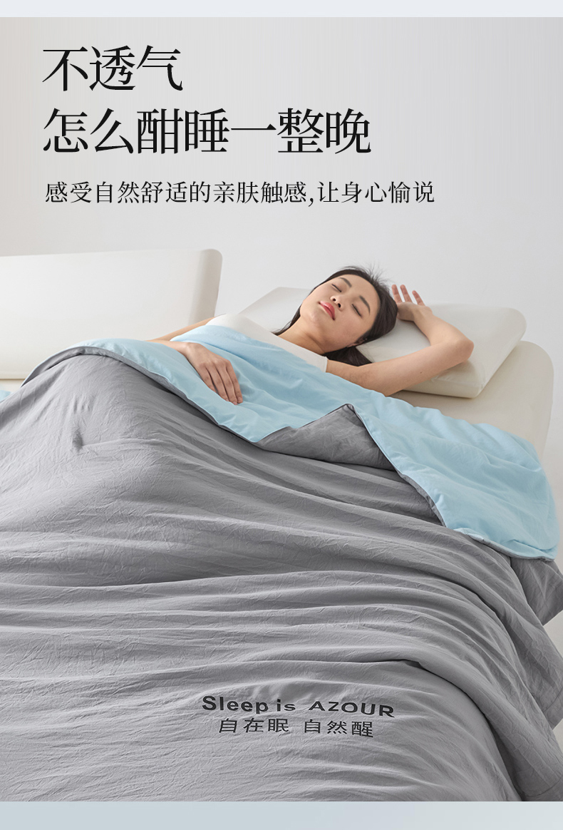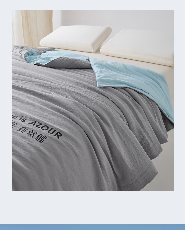 商品名称:闲鱼家纺 2025新款某朵同款深睡Pro夏被 自在眠 自然醒 浅灰+克莱茵蓝
