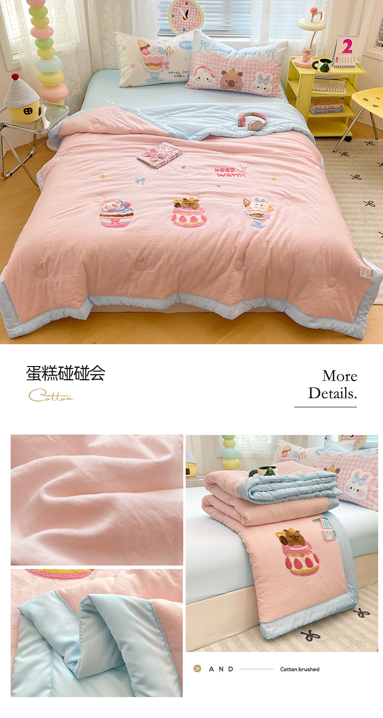 商品名称:康纳利 2025新款水洗云朵棉印花卡通夏被 抹茶冰激凌