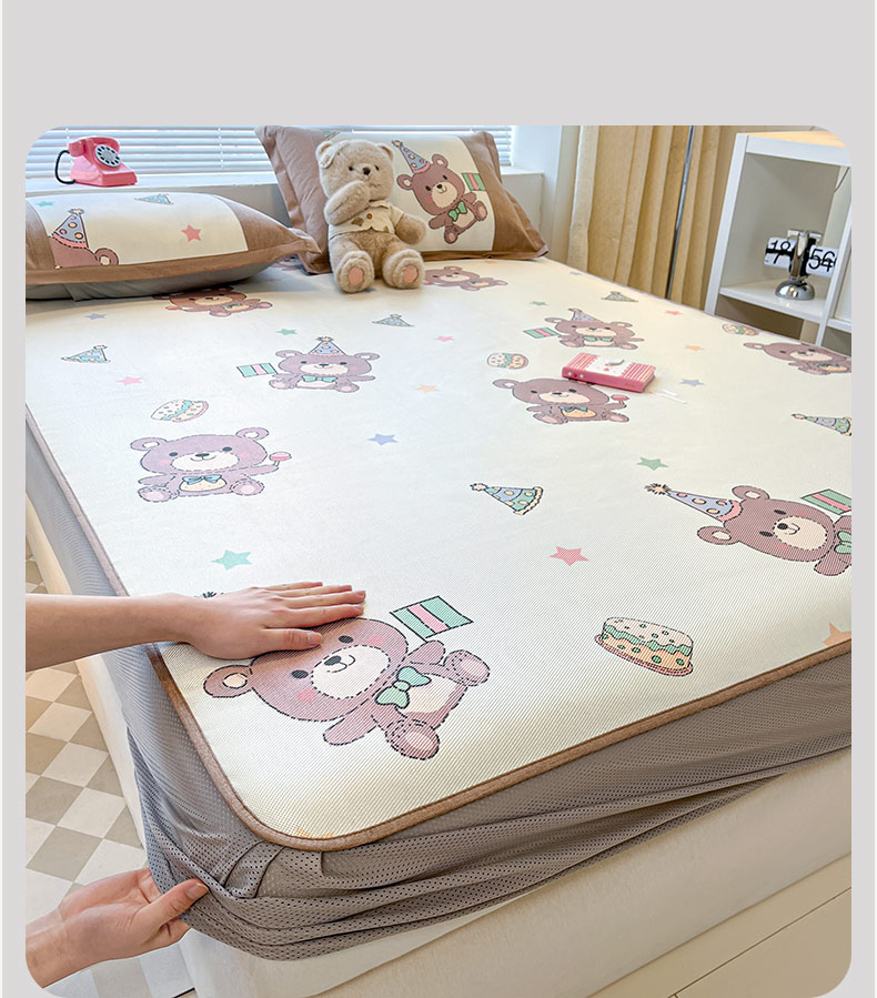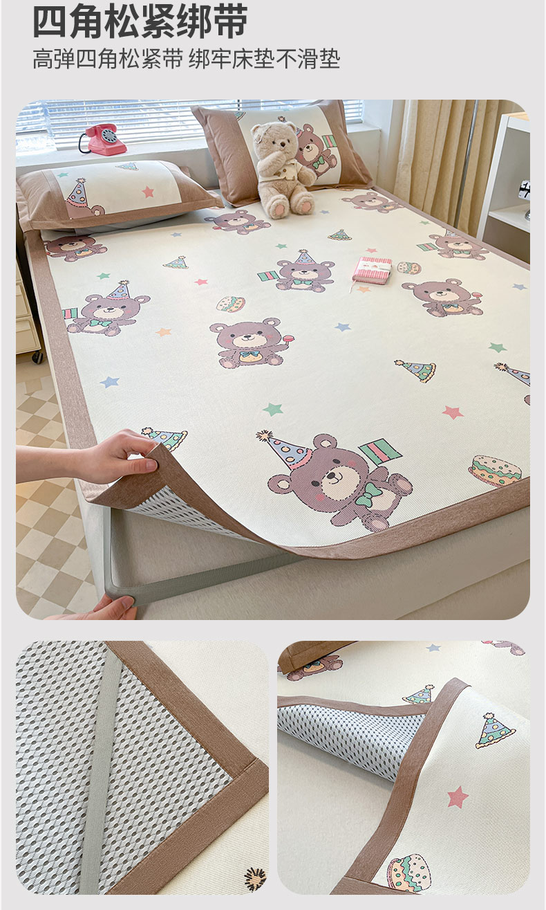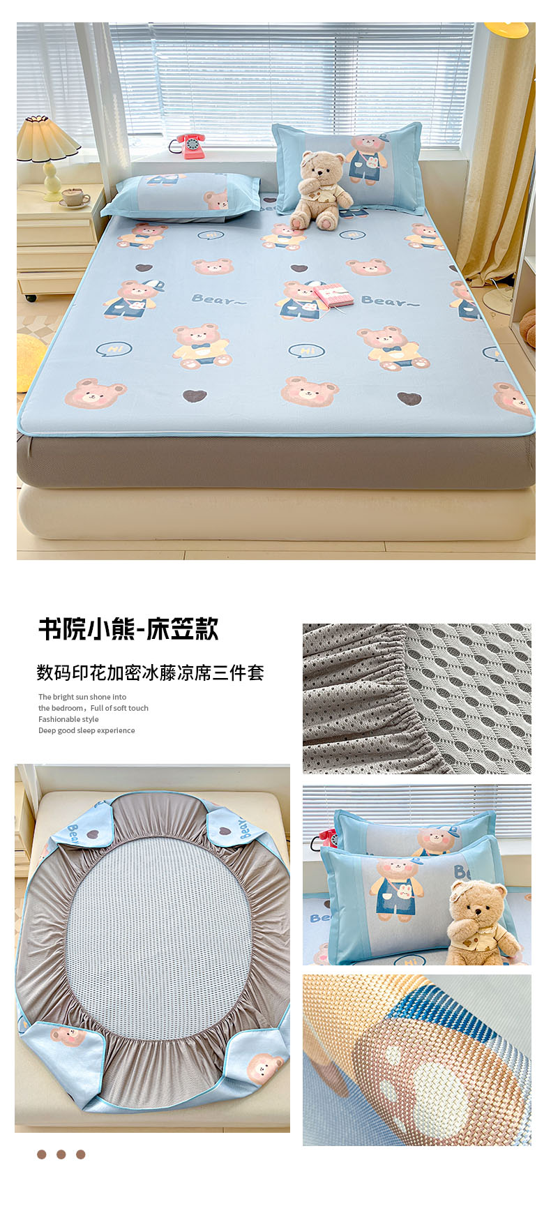 鑫琪莱家纺 2025新款数码印花加密冰藤凉席三件套 床席款-生日派对