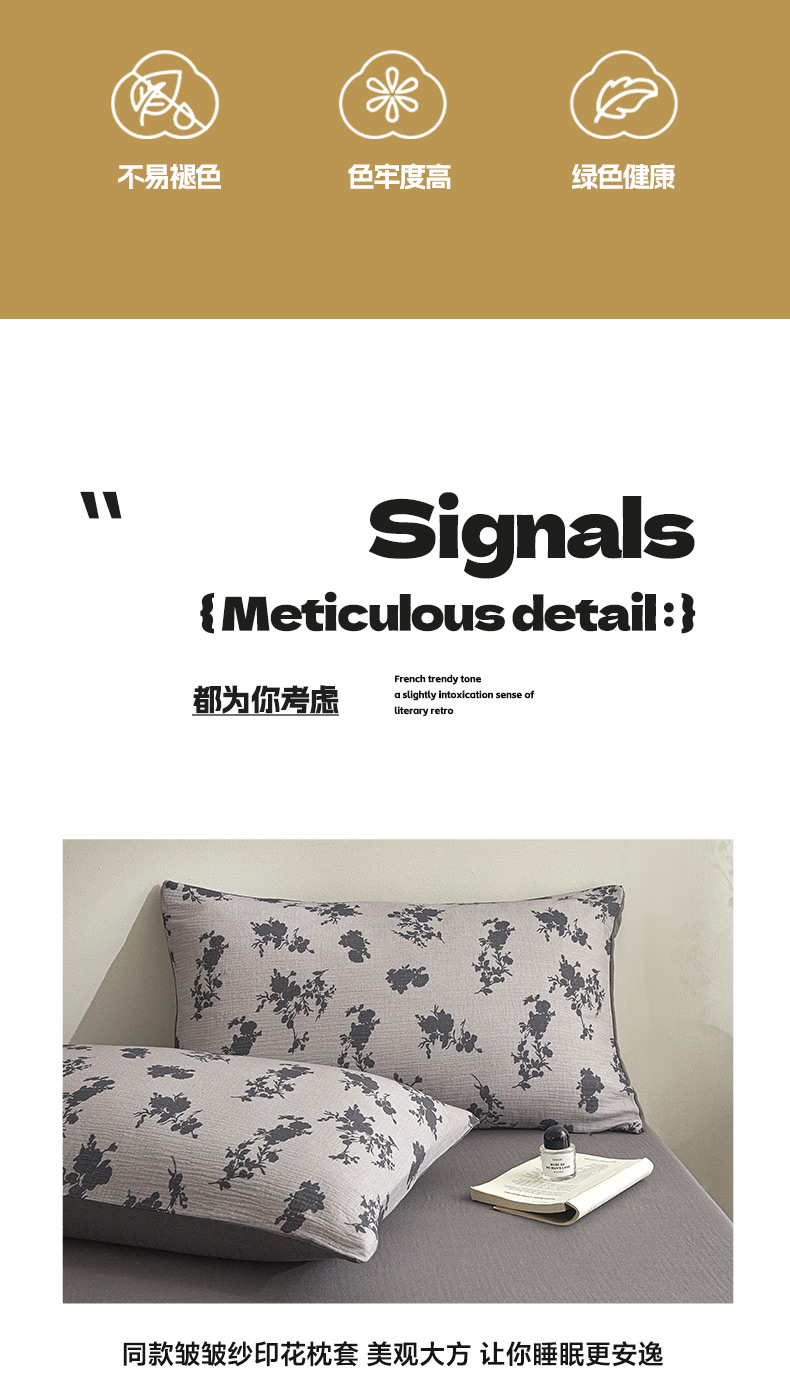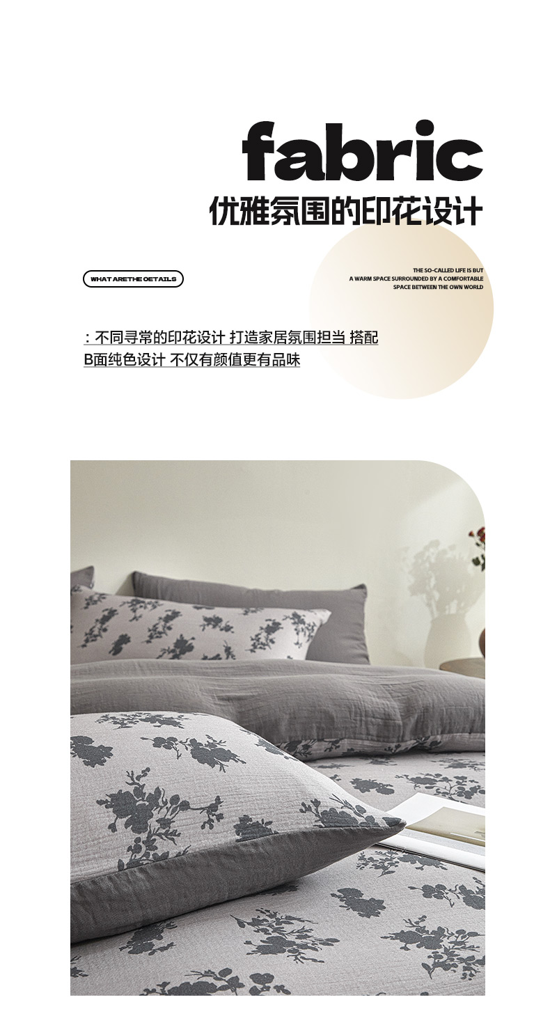 商品名称:卡巴伦家纺 2025新款全棉双层皱皱纱现代中古风数码四件套 细雨汀花-紫
