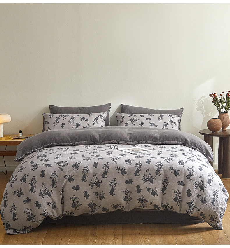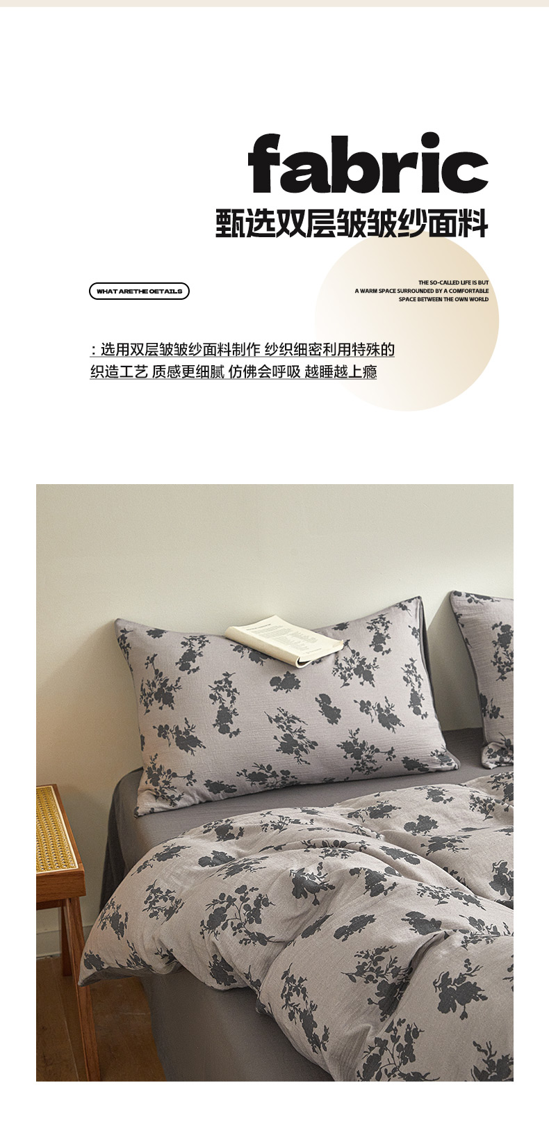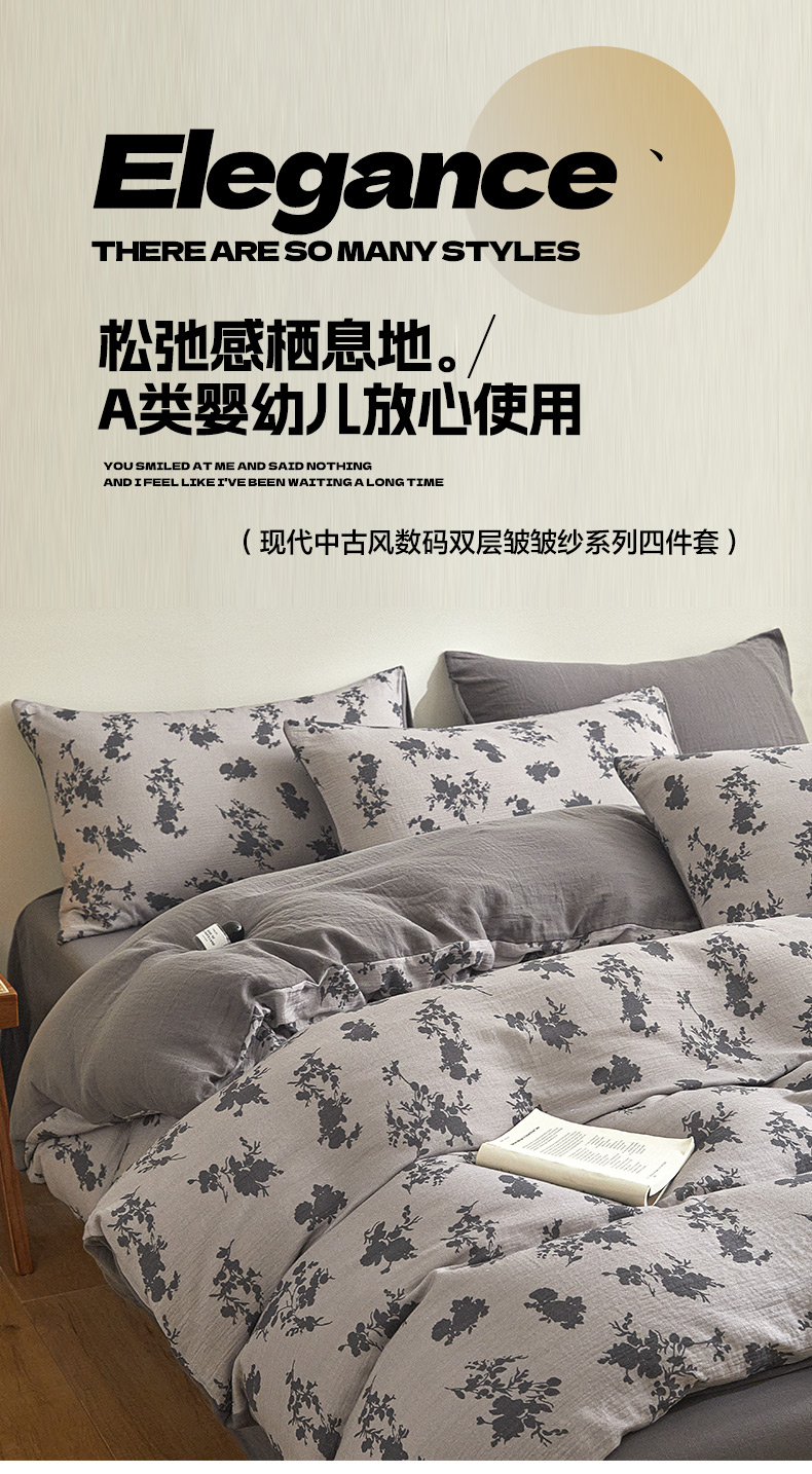 (总)卡巴伦家纺 2025新款全棉双层皱皱纱现代中古风数码四件套,细雨汀花-红,椿山集,蝴蝶剪影-蓝,蝴蝶剪影-棕,花弄影-黑,花弄影-绿,细雨汀花-米,细雨汀花-紫,枝瑶,织兮,竹影