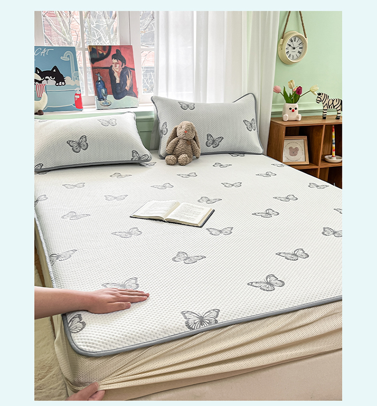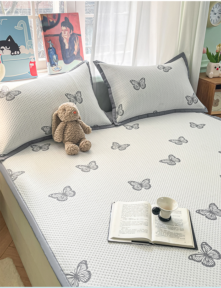 莱米家纺 2025新款冰感凉豆豆凉席 小蝴蝶—米白