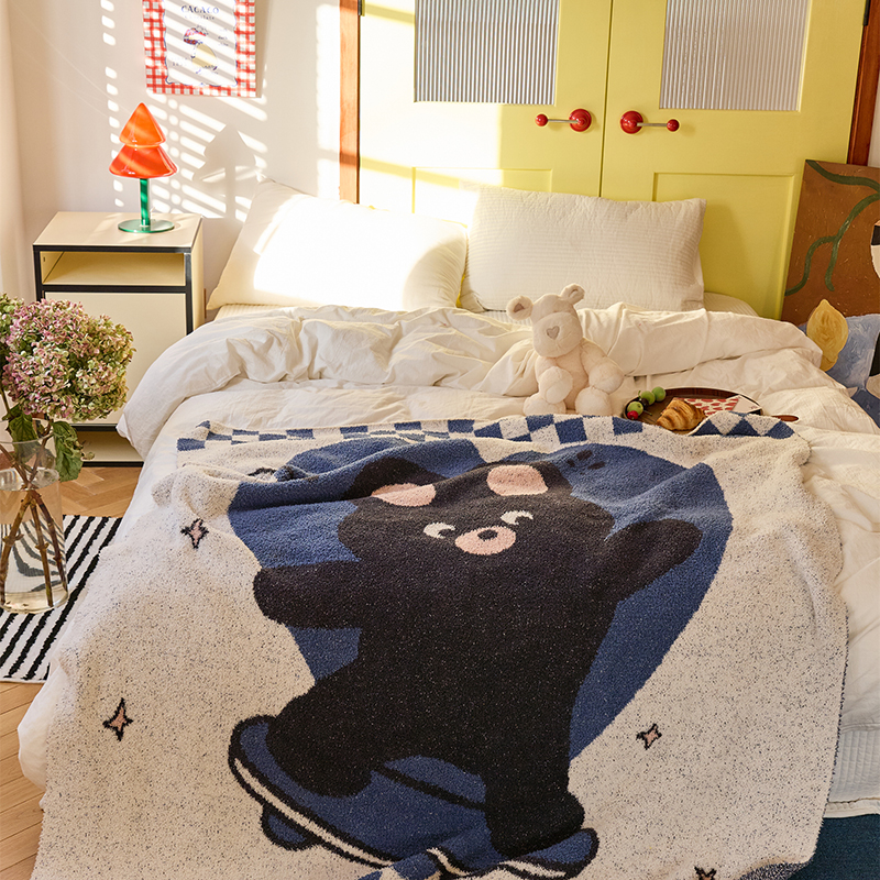 商品名称:(总)暖绵绵家纺 2025新款半边绒熊趣滑行卡通毯-皮卡熊