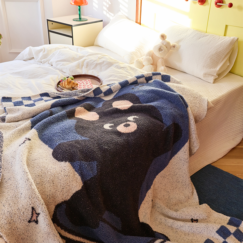 (总)暖绵绵家纺 2025新款半边绒熊趣滑行卡通毯-皮卡熊