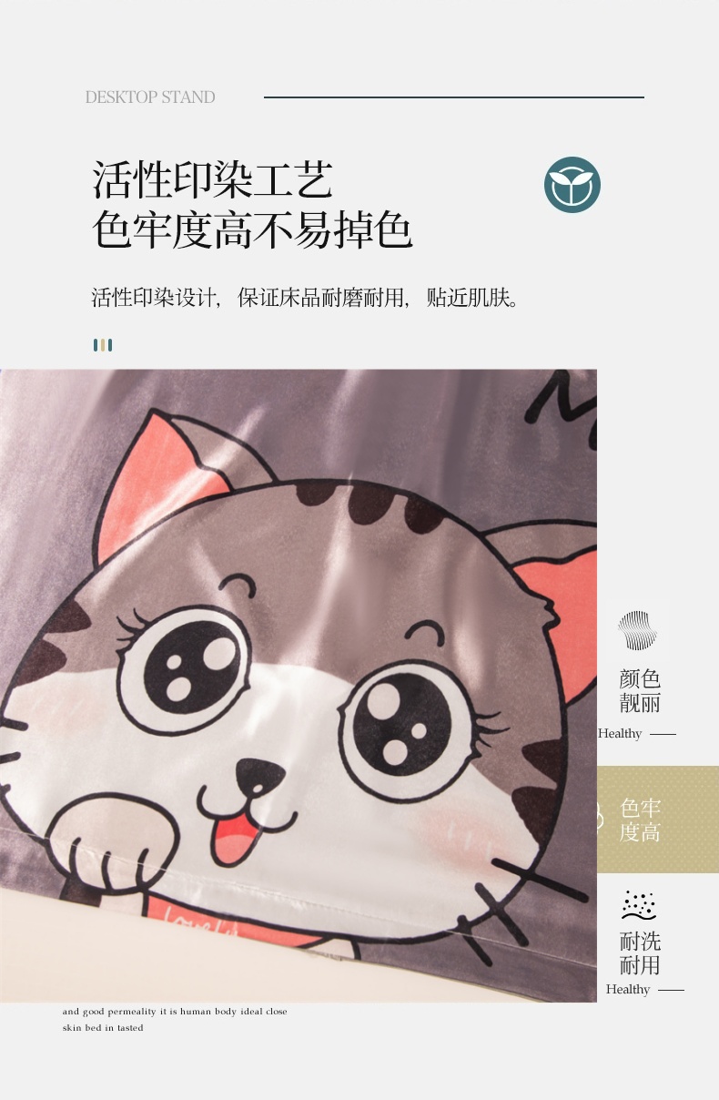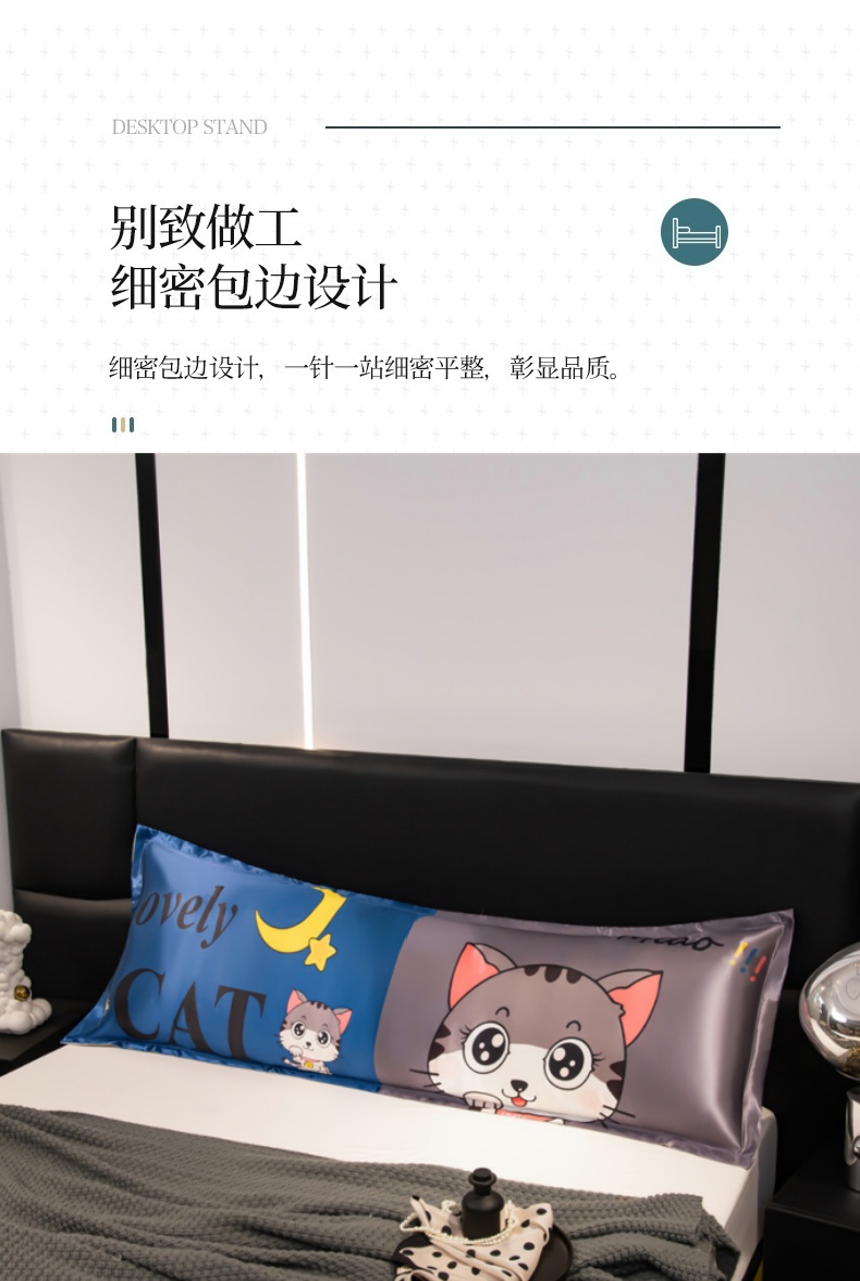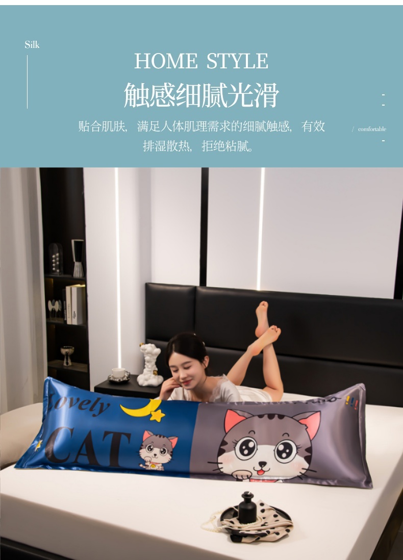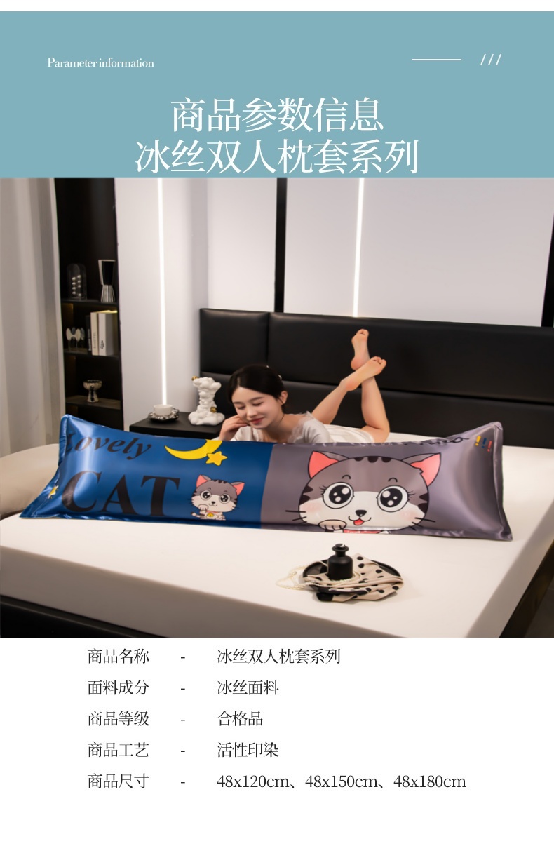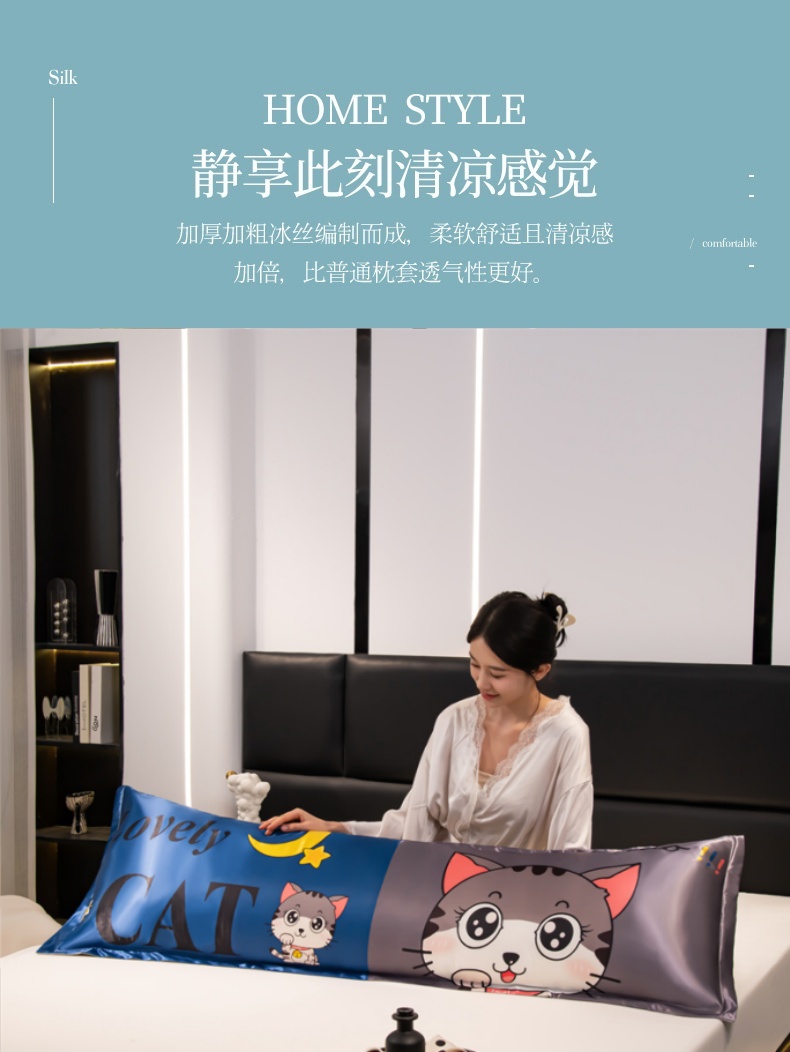 商品名称:梦舒羽 2025新款可水洗冰丝双人枕套凉爽情侣枕头套枕芯套 招财小猫