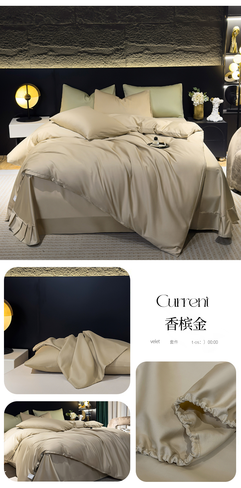 当前位置: 91家纺网 > 商品网购 > 床品套件 > 四件套 > 全棉普通四件套 > 氧家2025新款60支全棉贡缎纯色四件套 香槟金