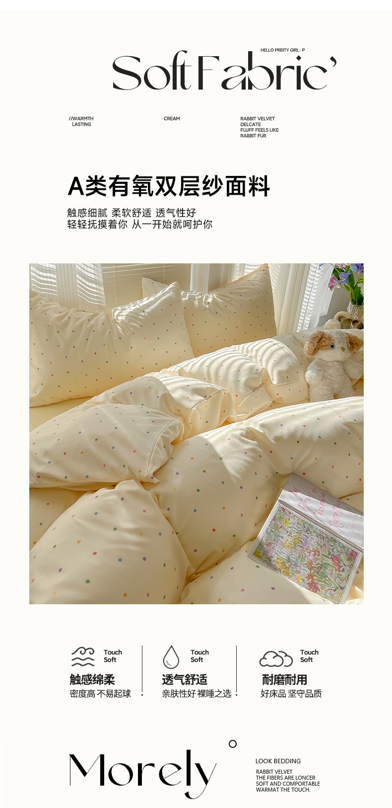 当前位置: 91家纺网 > 商品网购 > 床品套件 > 四件套 > 全棉普通四件套 > 悦织湾家纺 2025新款A类有氧针织棉印花四件套印花轻奢时尚学生宿舍单双人床上用品四件套 A类有氧针织棉园点