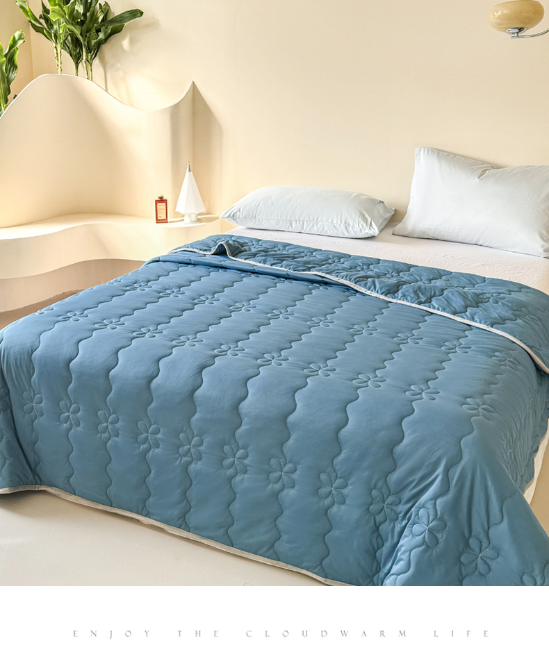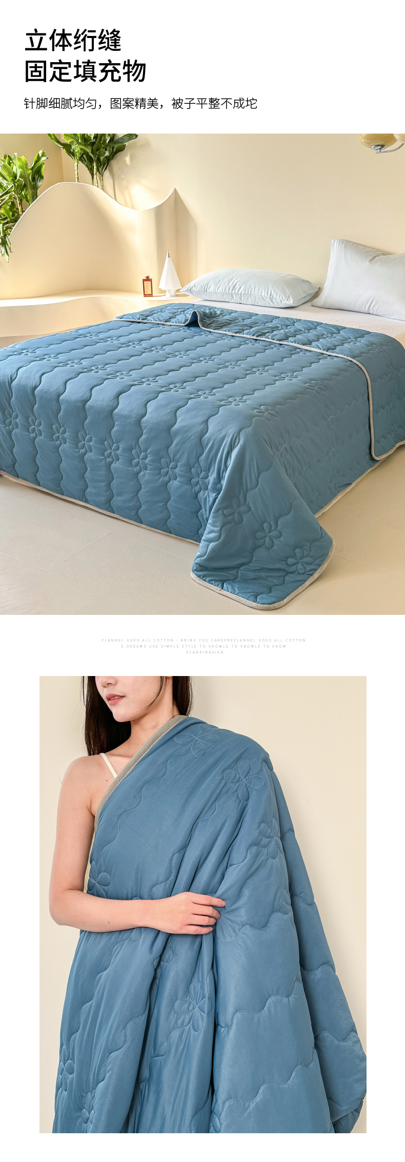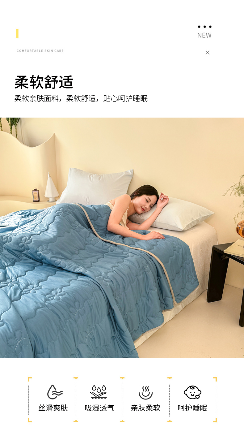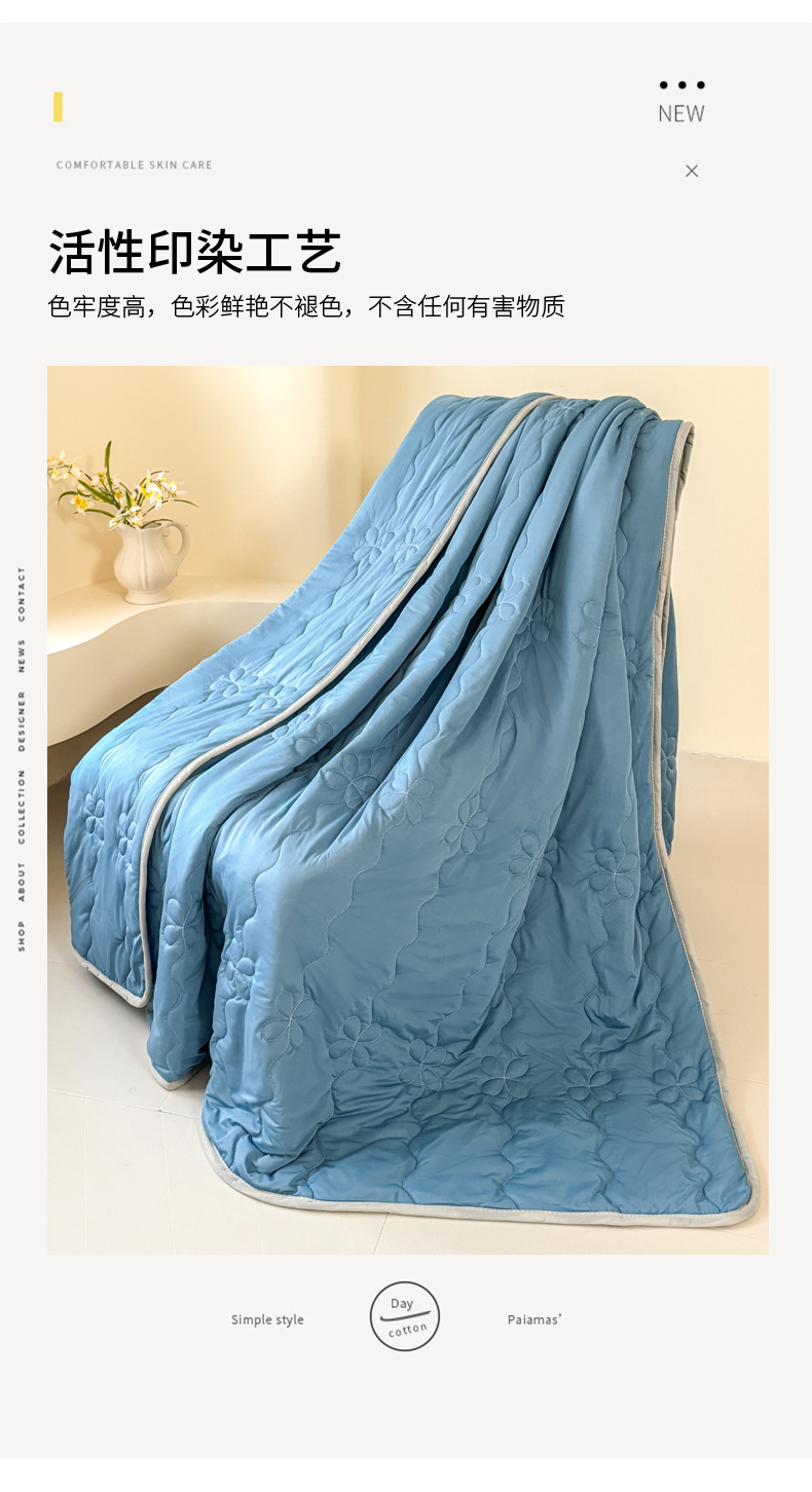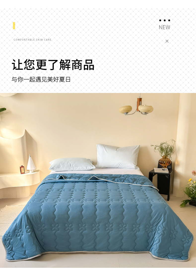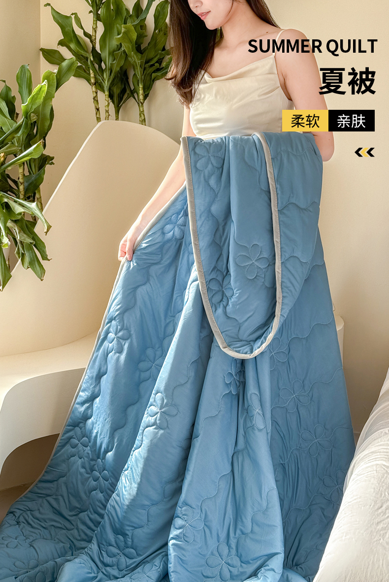 商品名称:丹本家纺 2025新款简约无印风纯色凉感丝小包边夏被 蓝