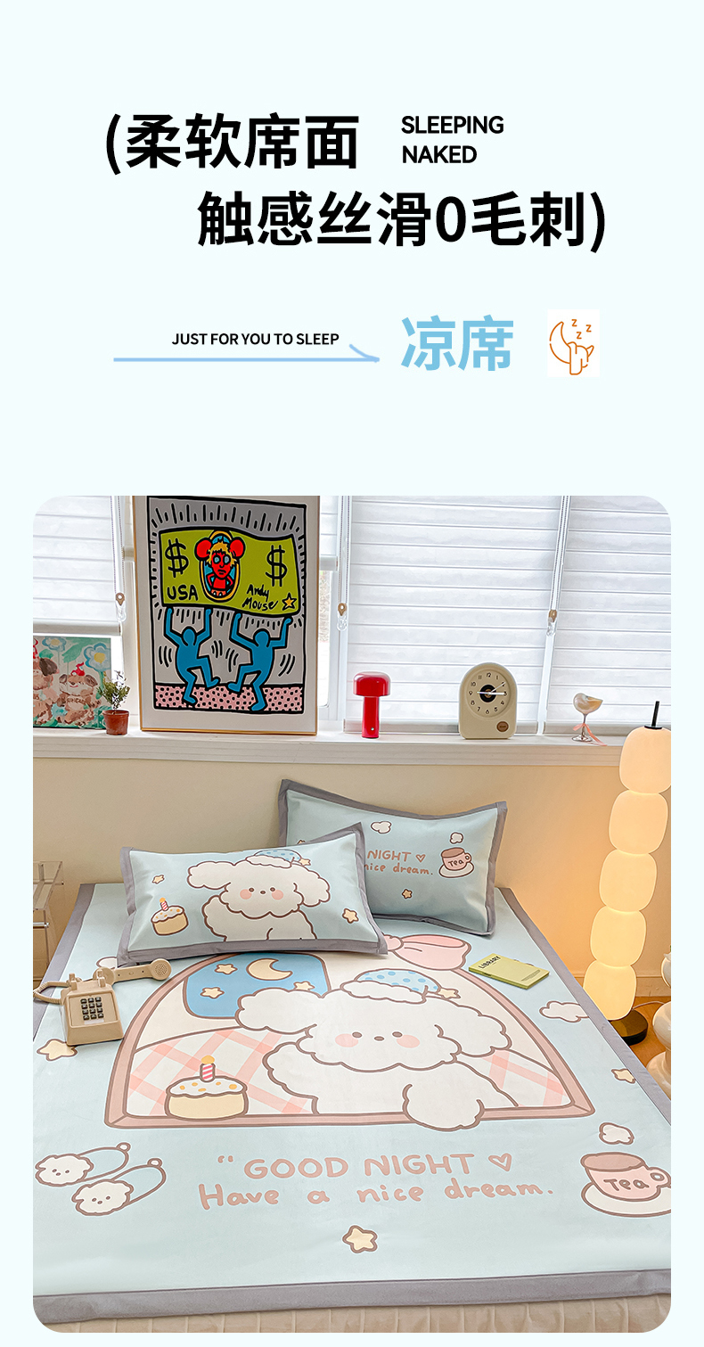 川悦生活 2025新款大版凉感冰丝席三件套 小旺夜梦
