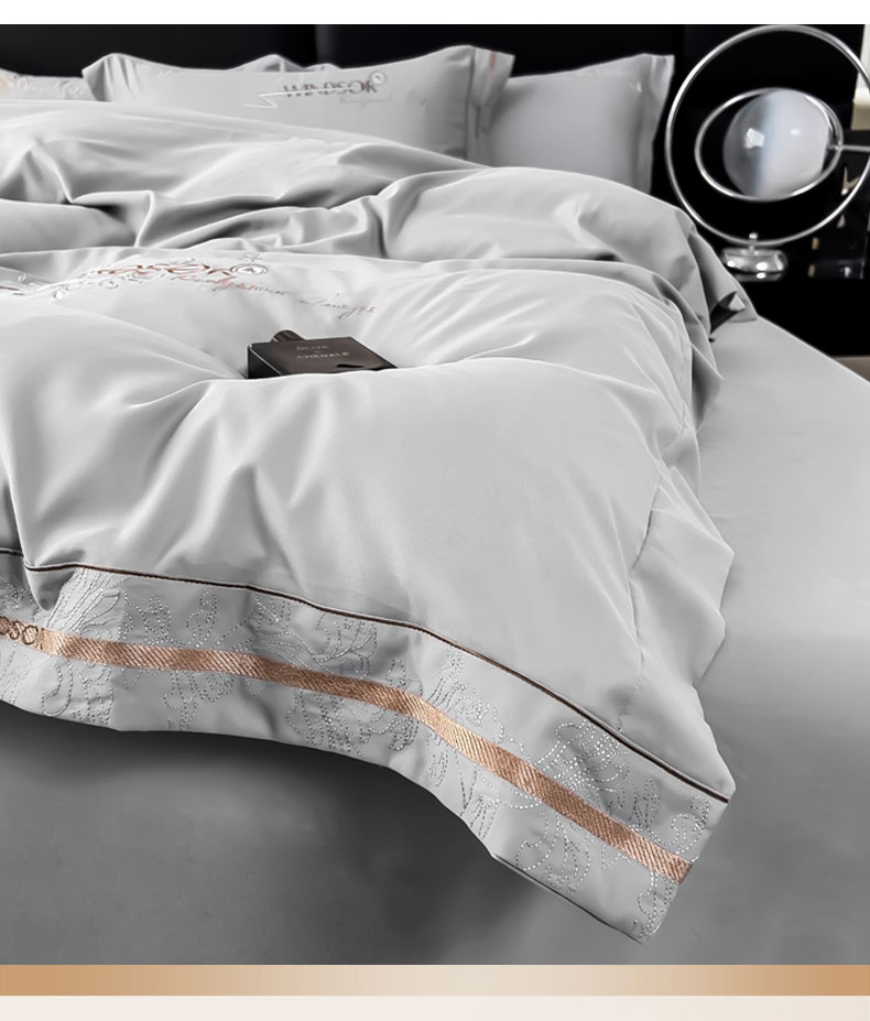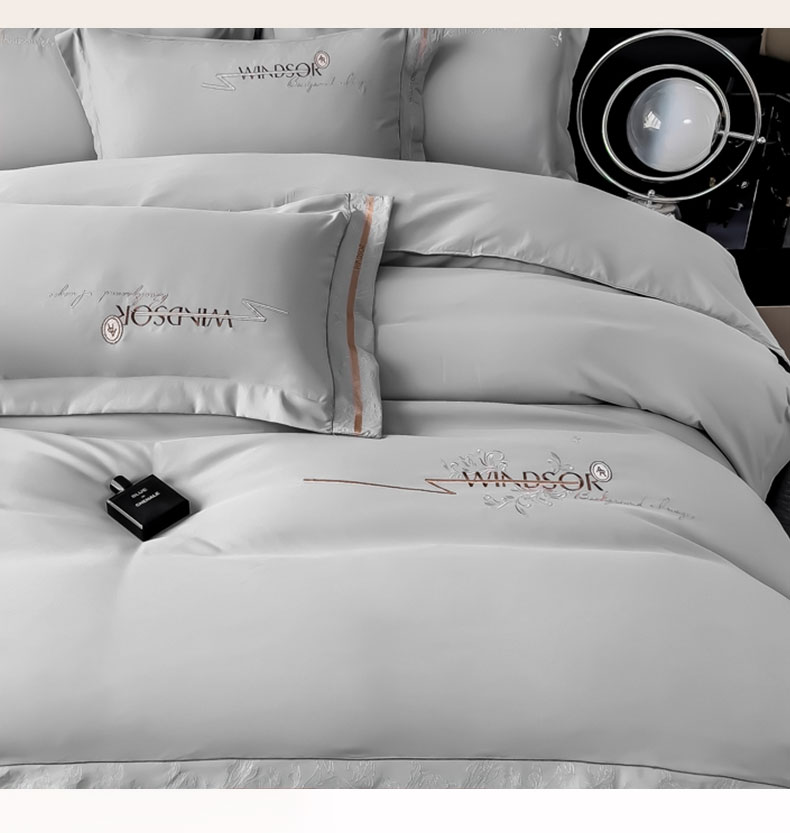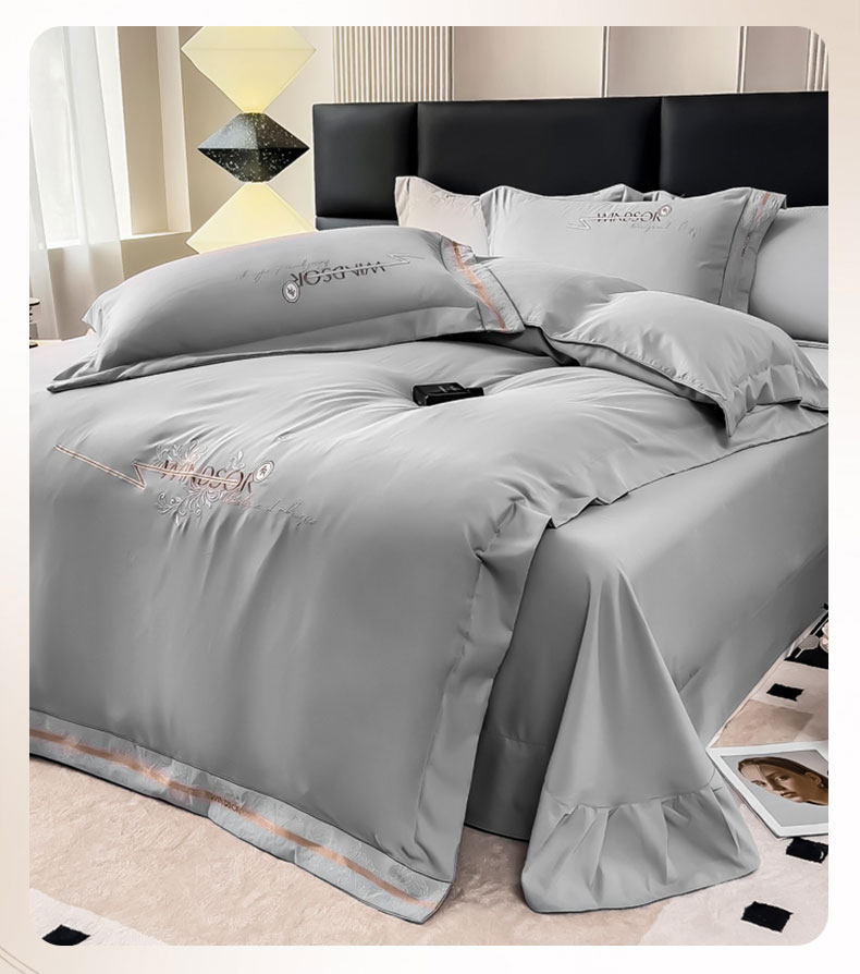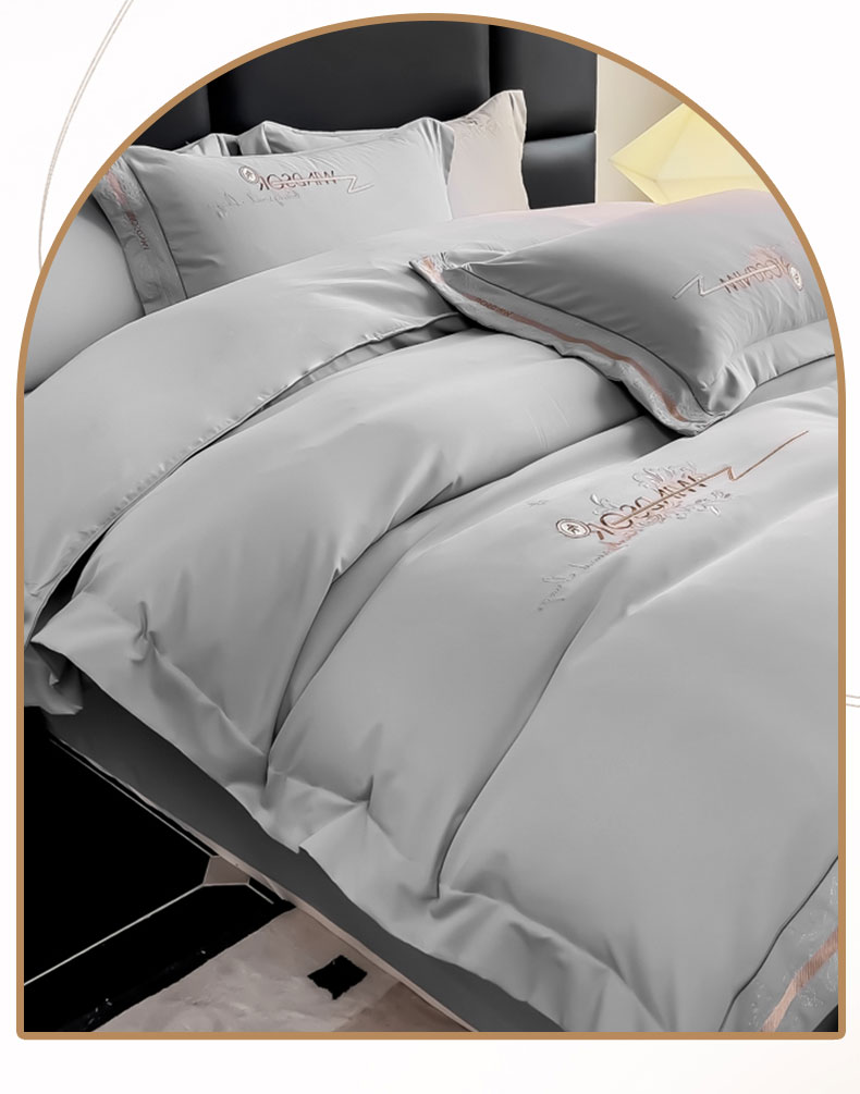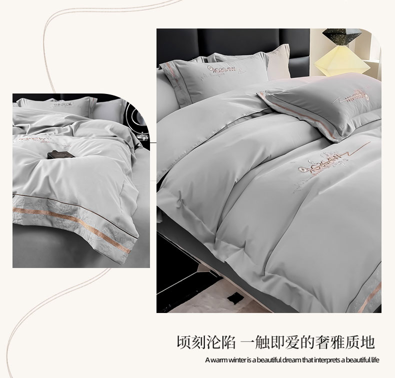 商品名称:曲之慕 2025新品四季款高端刺绣四件套简约可水洗轻奢纯色刺绣四件套 蒂尔高级灰