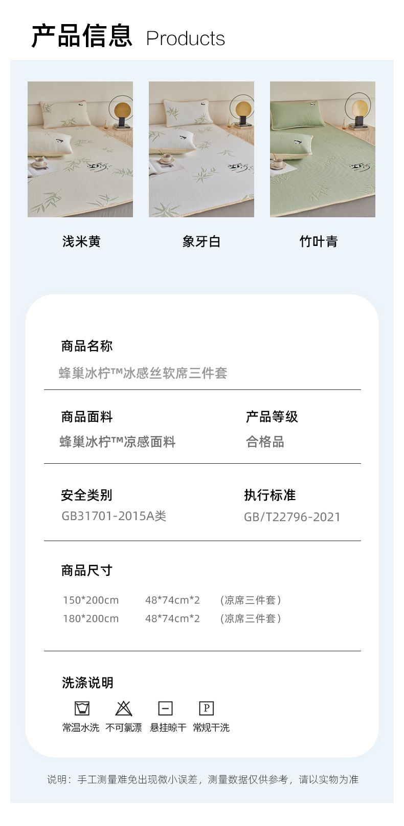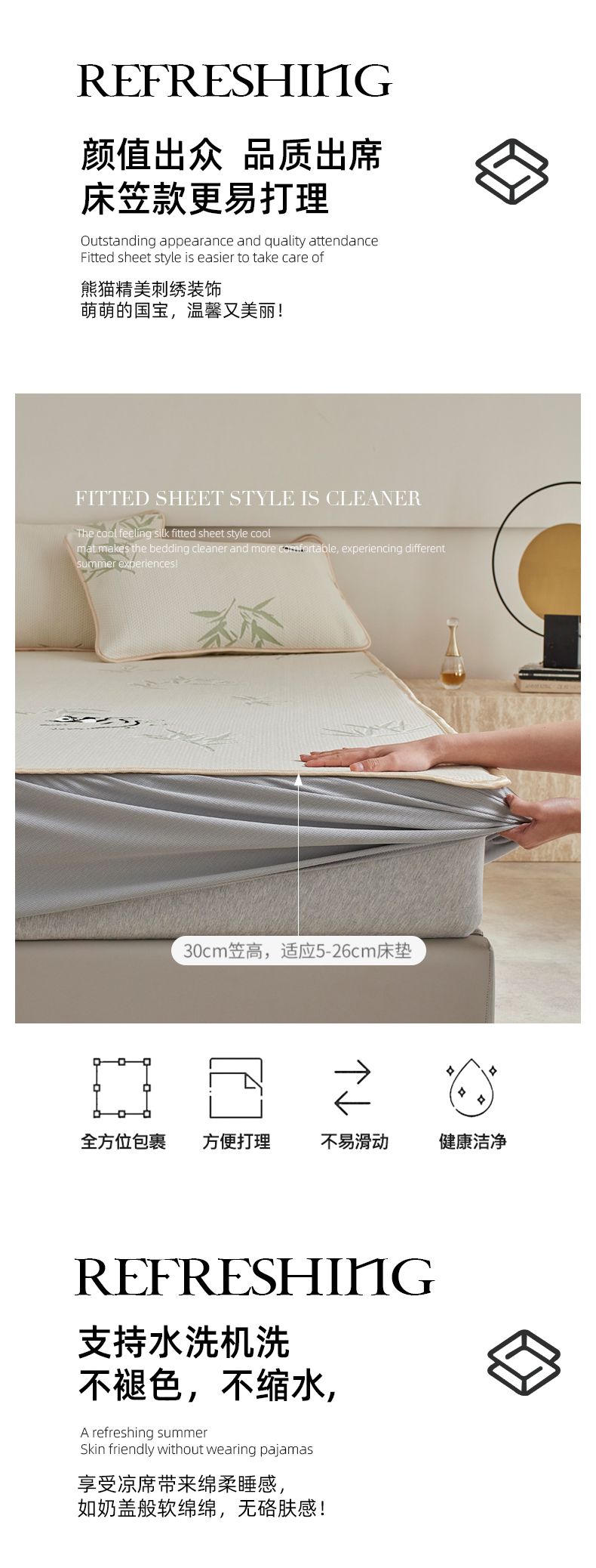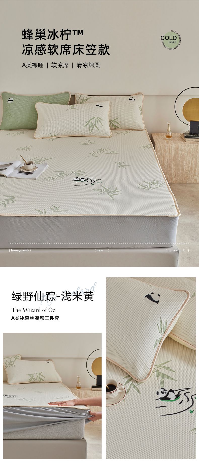 商品名称:(总)千朵森 2025新款熊猫冰感丝床笠款凉席三件套