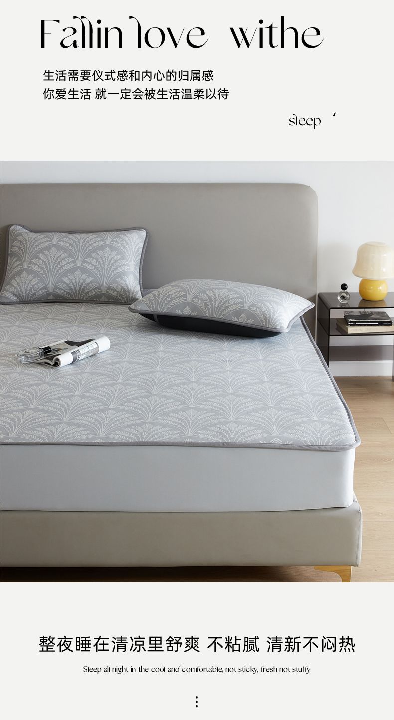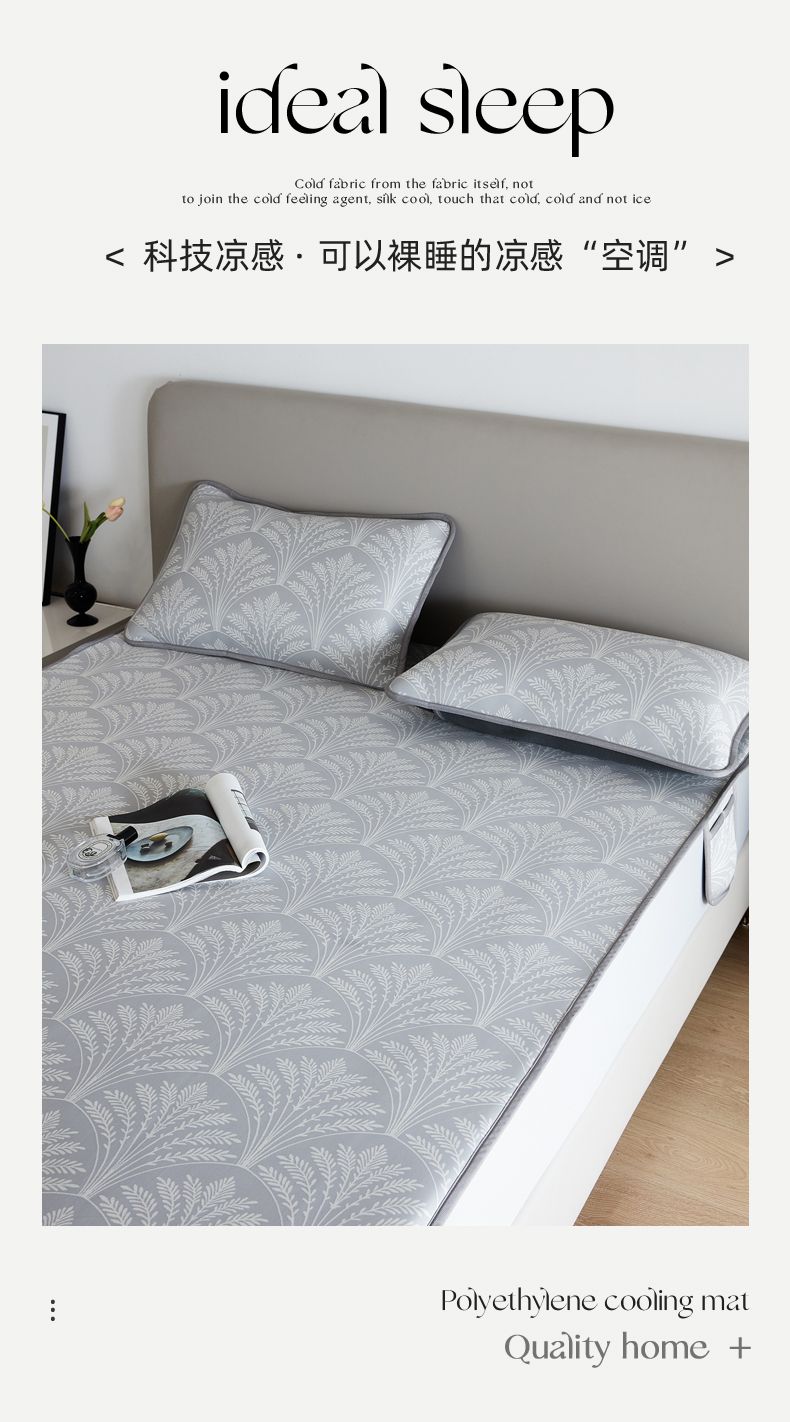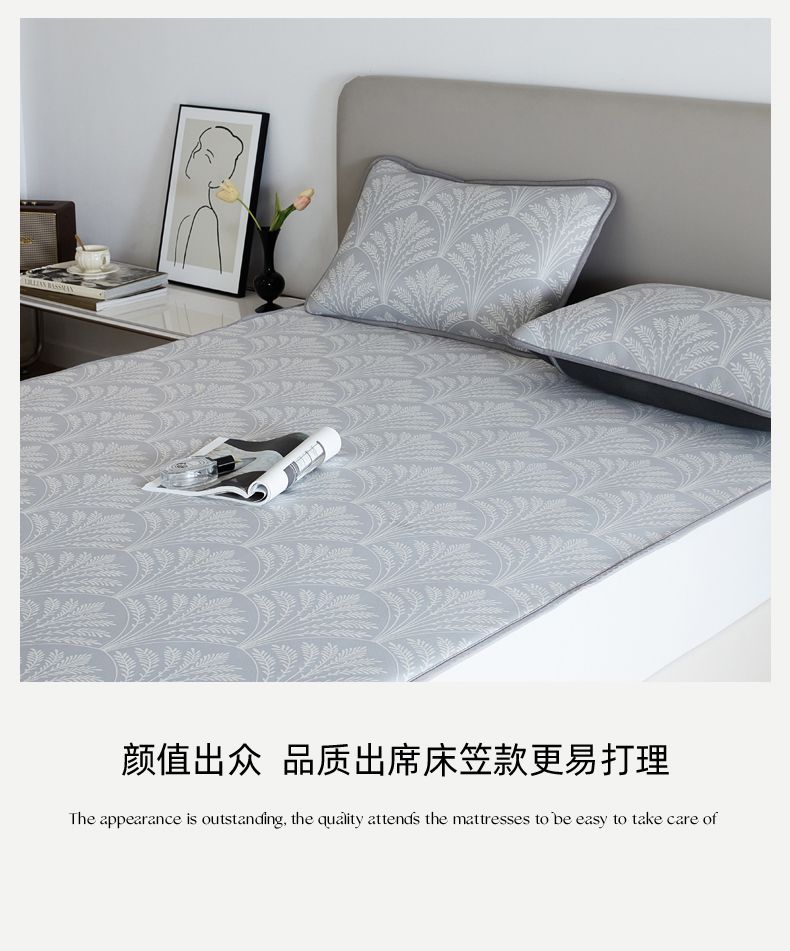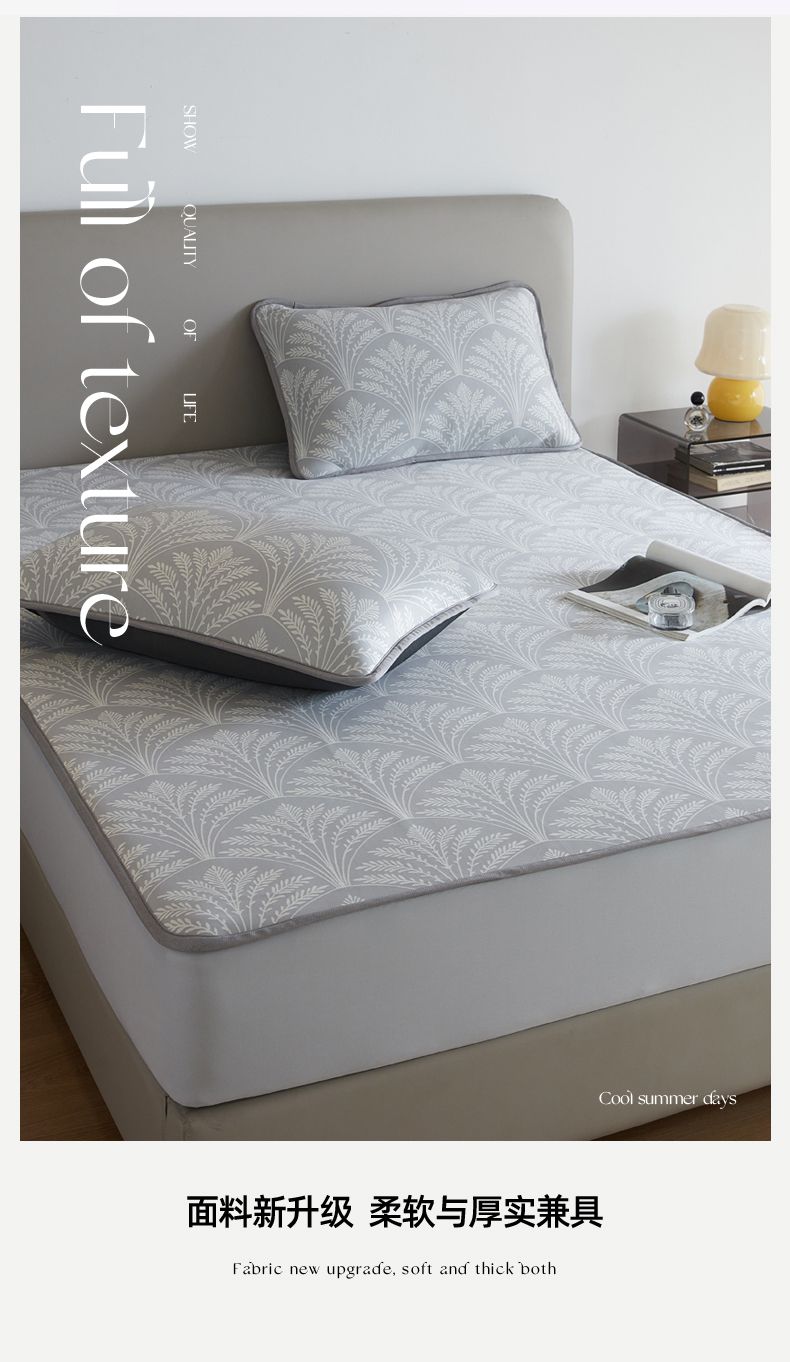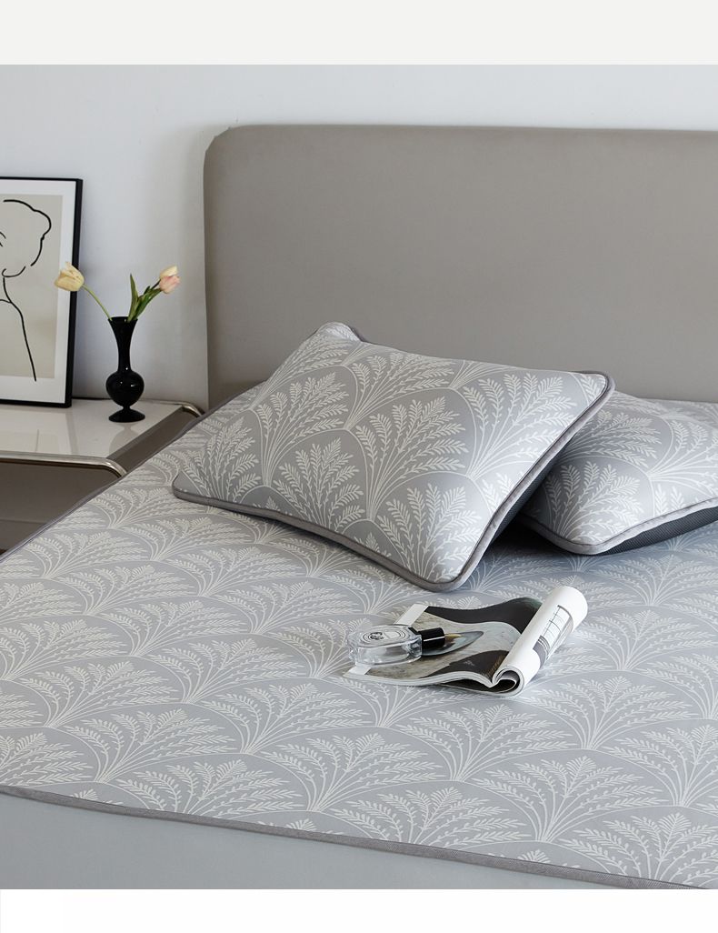 商品名称:千朵森 2025新款冰岛冰感丝床笠款凉席三件套-风格一 冰岛-山梗灰