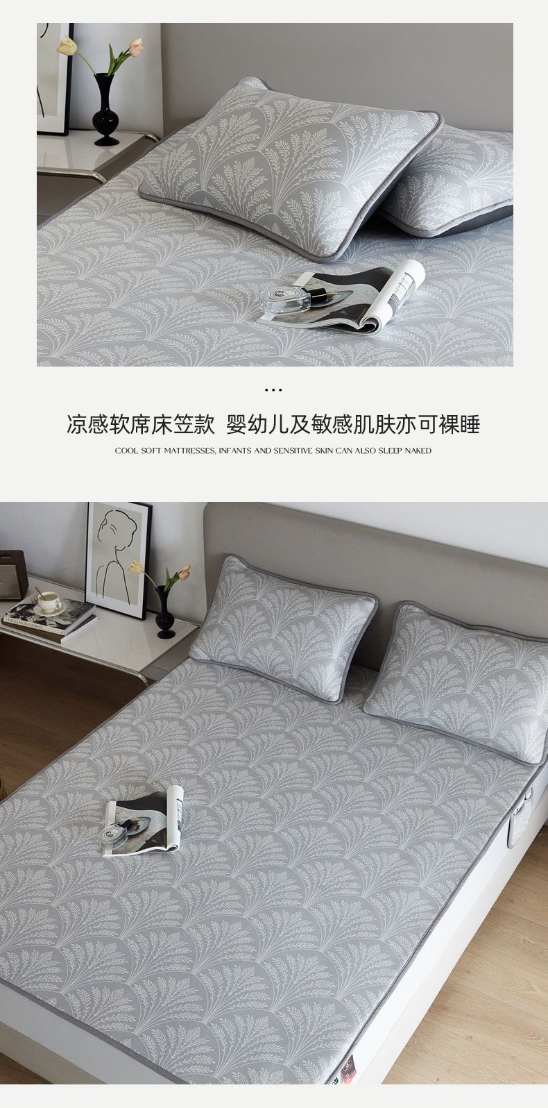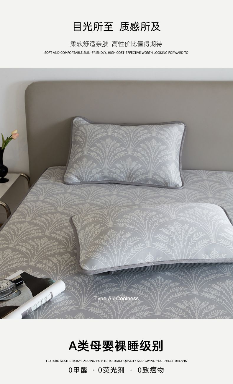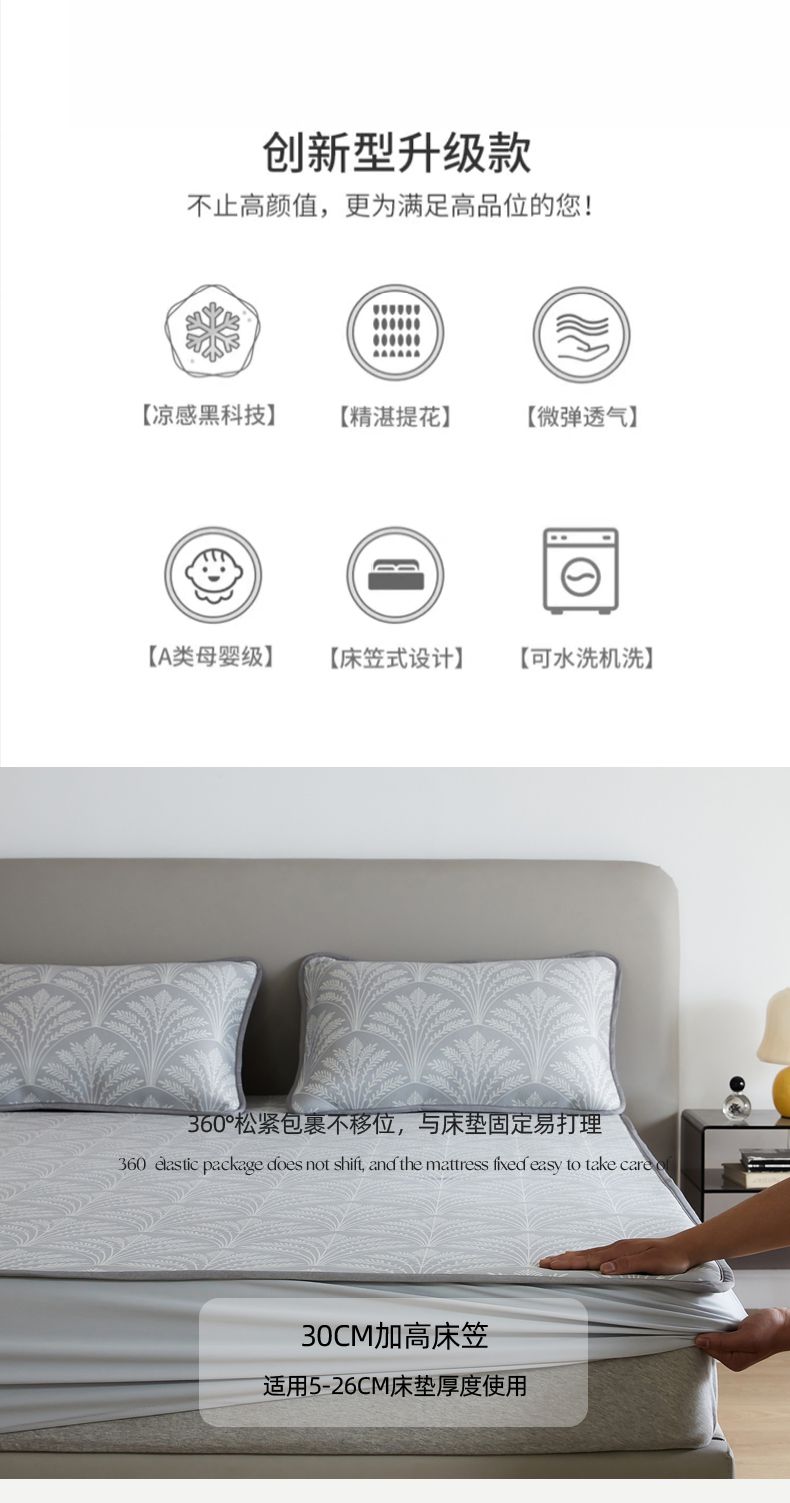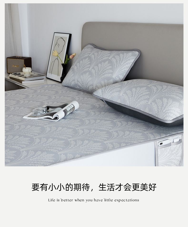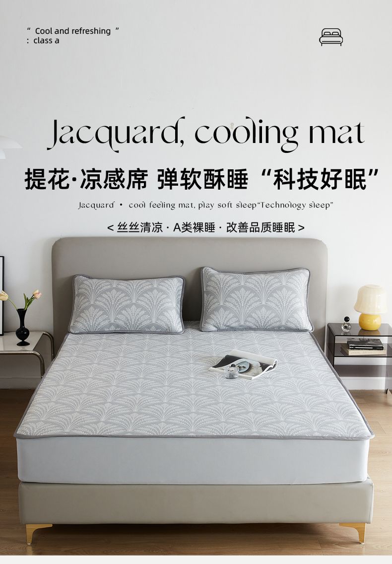 商品名称:千朵森 2025新款冰岛冰感丝床笠款凉席三件套-风格一 冰岛-山梗灰