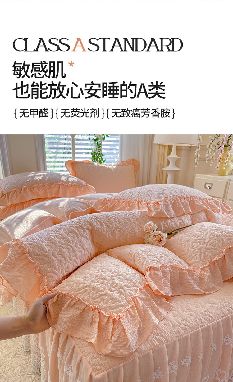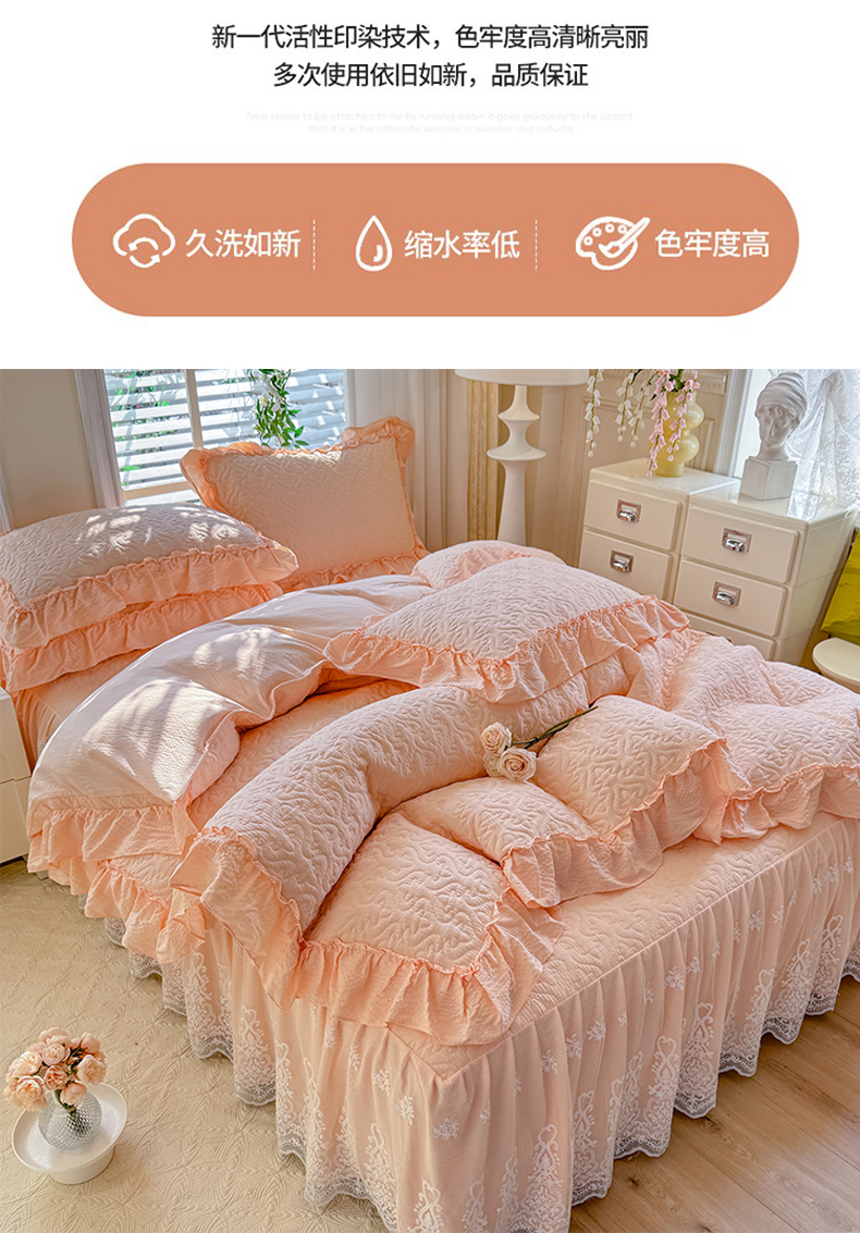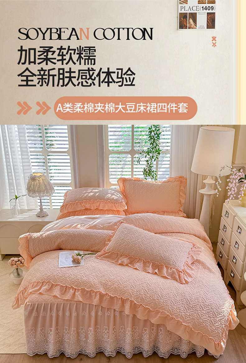 当前位置: 91家纺网 > 商品网购 > 床品套件 > 四件套 > 全棉普通四件套 > 2025新款A类华夫格大豆棉床裙四件套-梦幻花园 梦幻花园-玉
