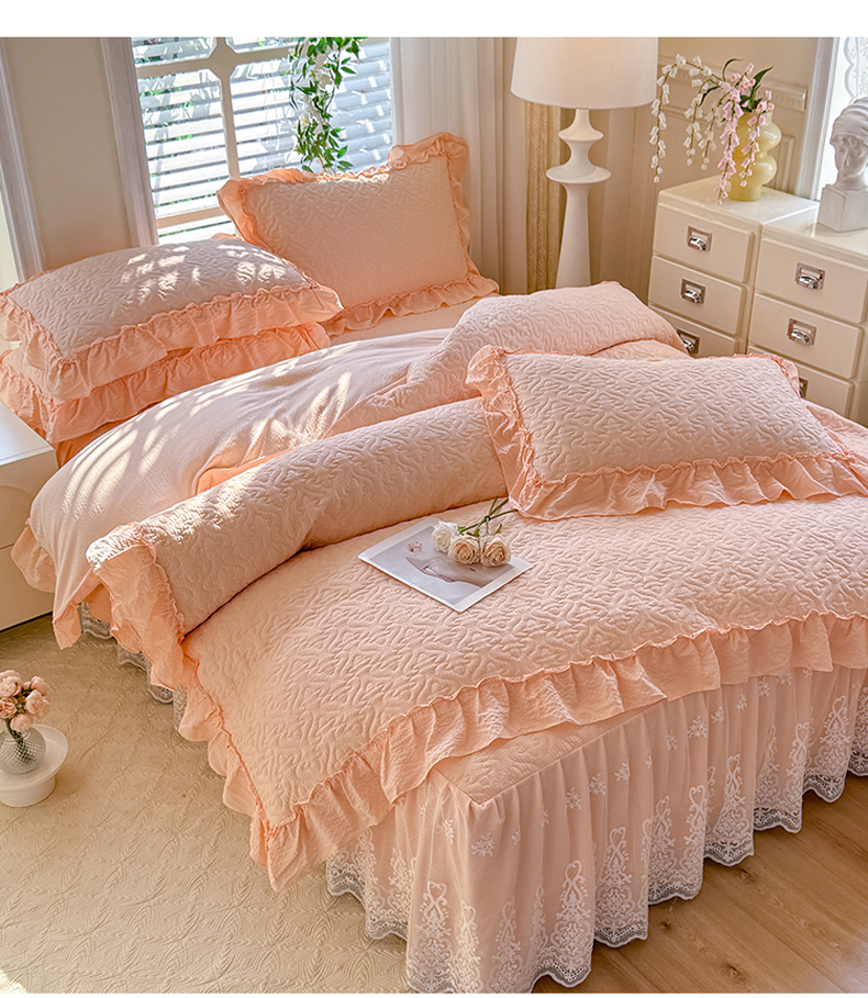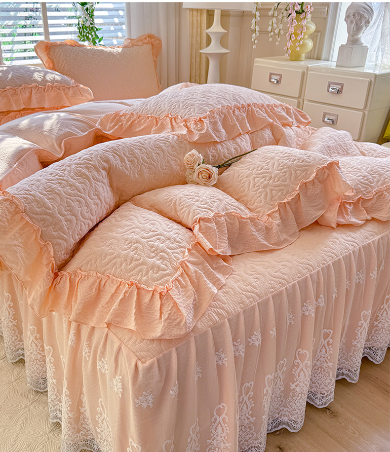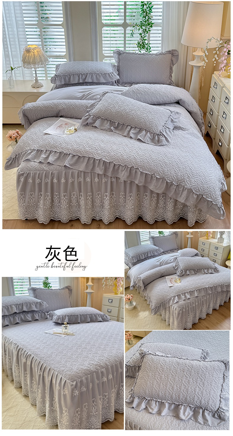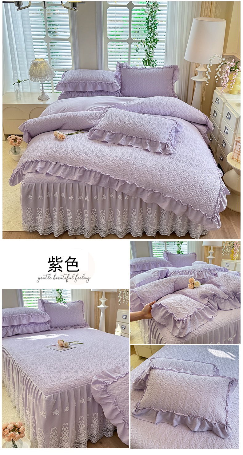当前位置: 91家纺网 > 商品网购 > 床品套件 > 四件套 > 全棉普通四件套 > 2025新款A类华夫格大豆棉床裙四件套-梦幻花园 梦幻花园-玉