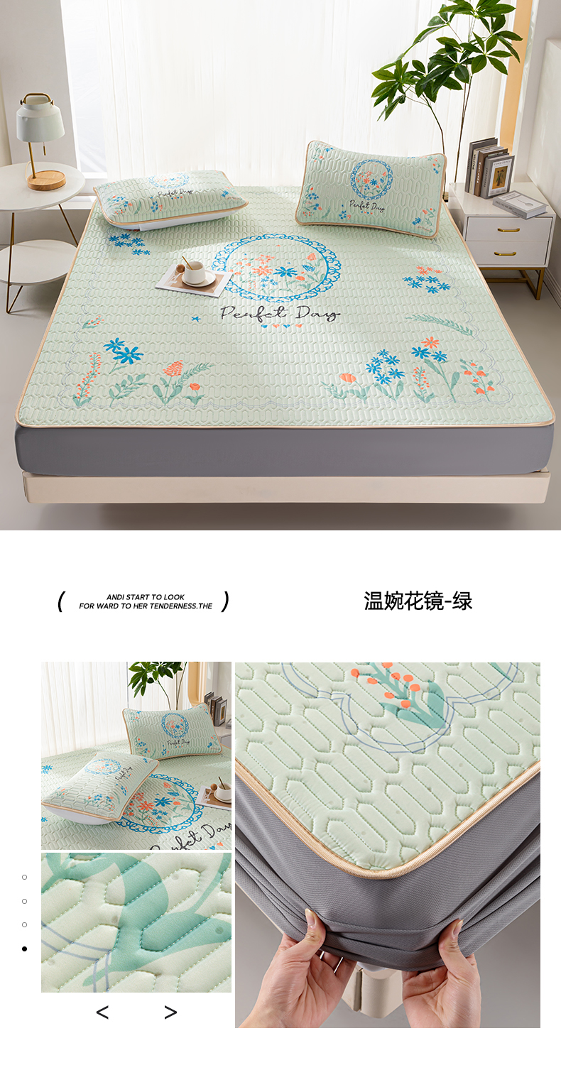 商品名称:美丽折家纺 2025新款6mm厚乳胶床笠款三件套 温婉花镜-绿