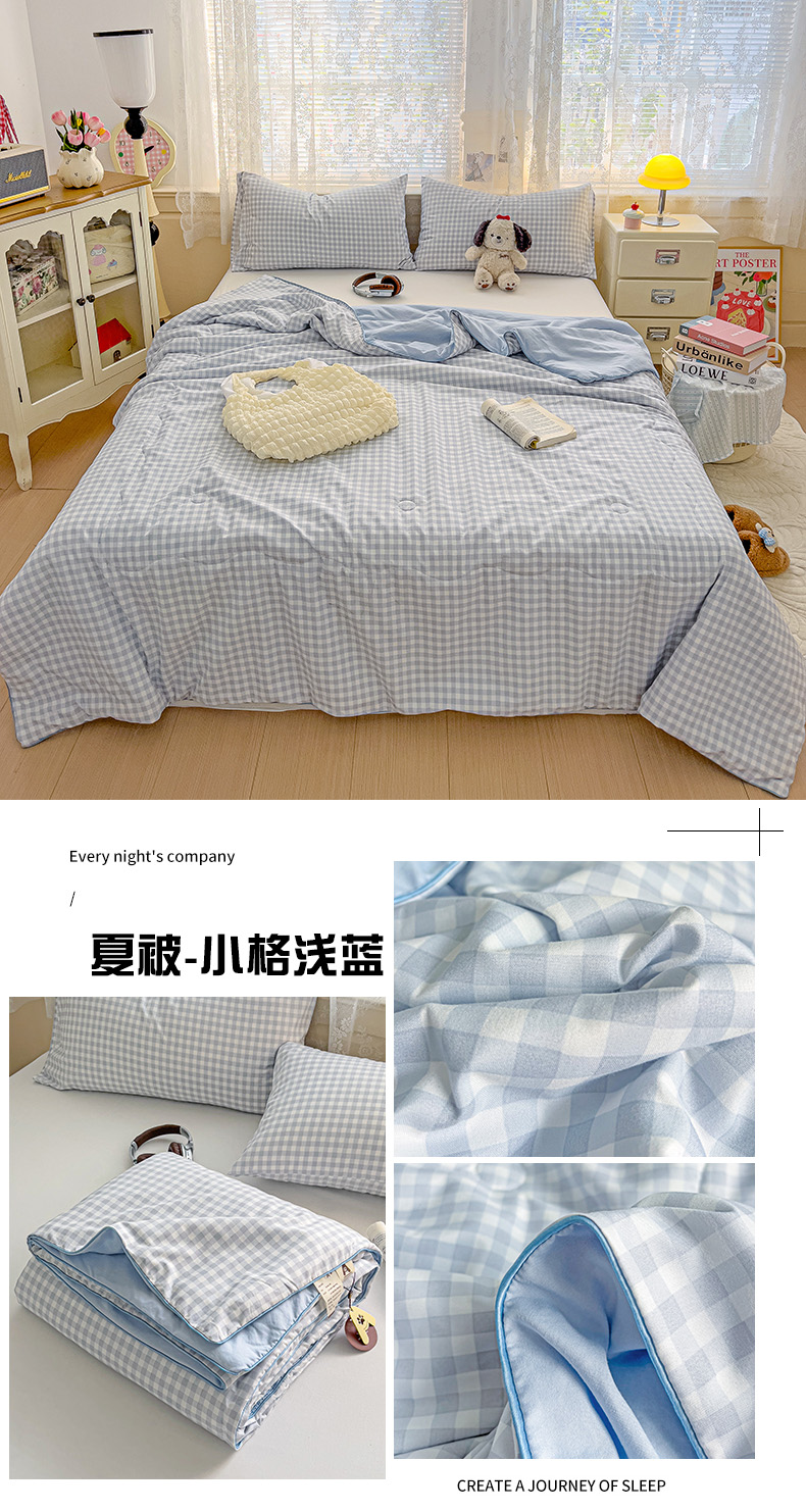 2025春夏新款嵌绳款云柔水洗棉单夏被夏凉被空调被 嵌绳夏被-小格浅兰
