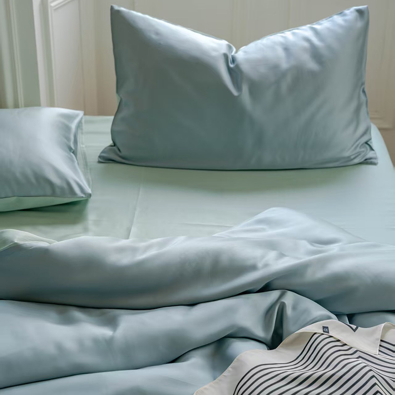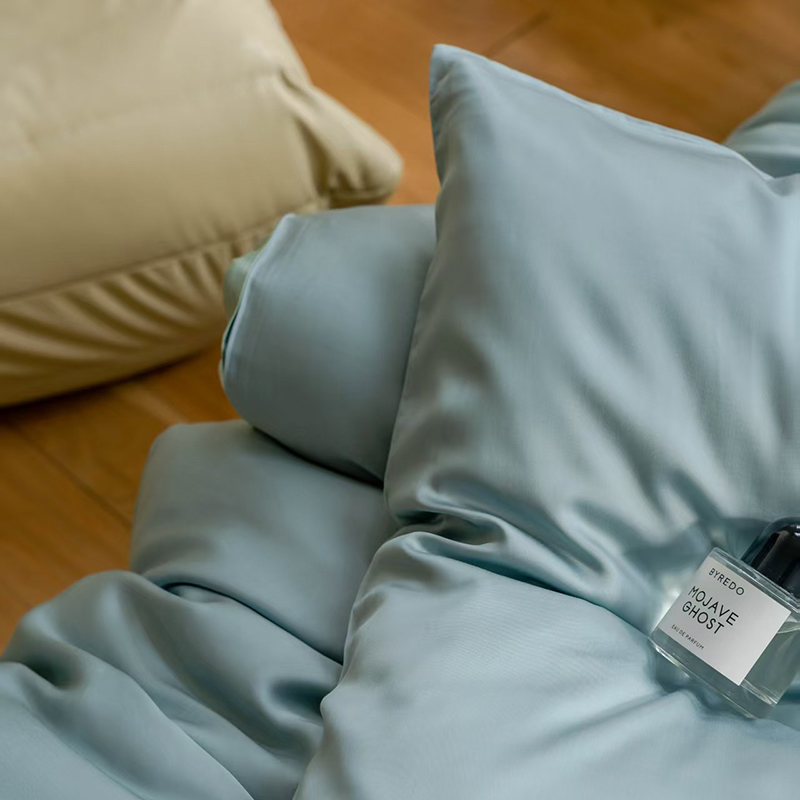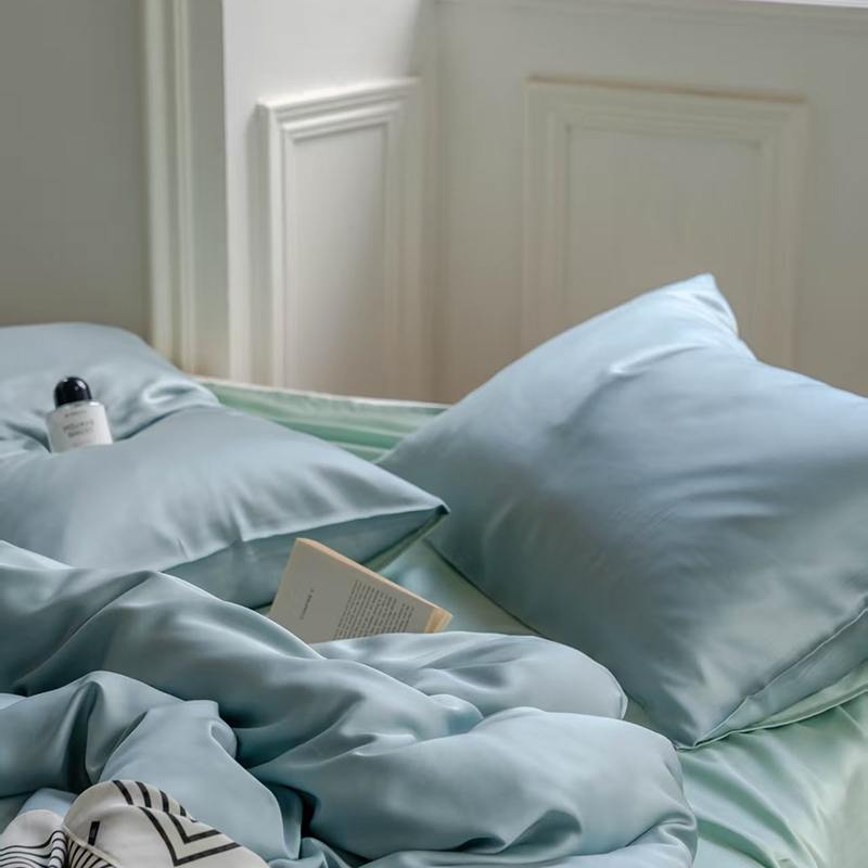 当前位置: 91家纺网 > 商品网购 > 床品套件 > 四件套 > 莱赛尔四件套 > 未来家居 2025新款60S兰精天丝纯色四件套 天空蓝-浅艾绿