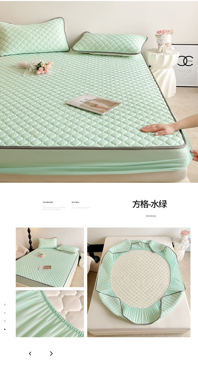商品名称:2025新款加厚0.5纯色凉感丝单床笠乳胶凉席 方格-水绿
