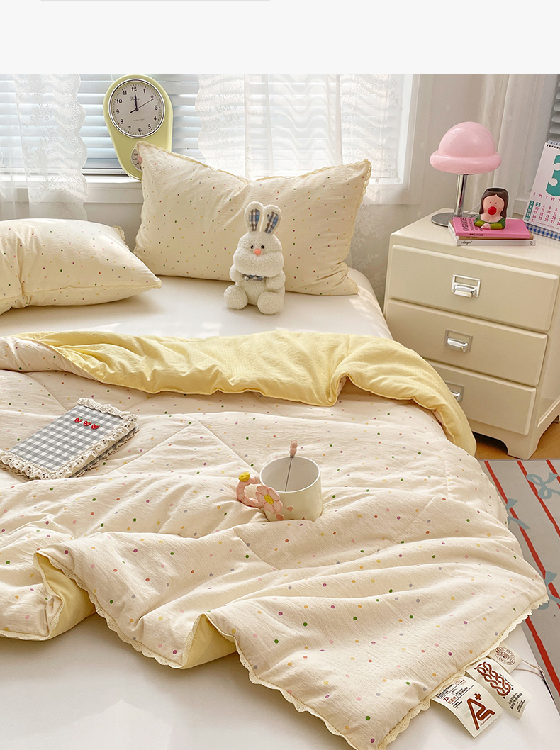 优承佳生活馆 2025新款云感双层纱浪漫小花边抗菌夏被子被芯 彩色波点