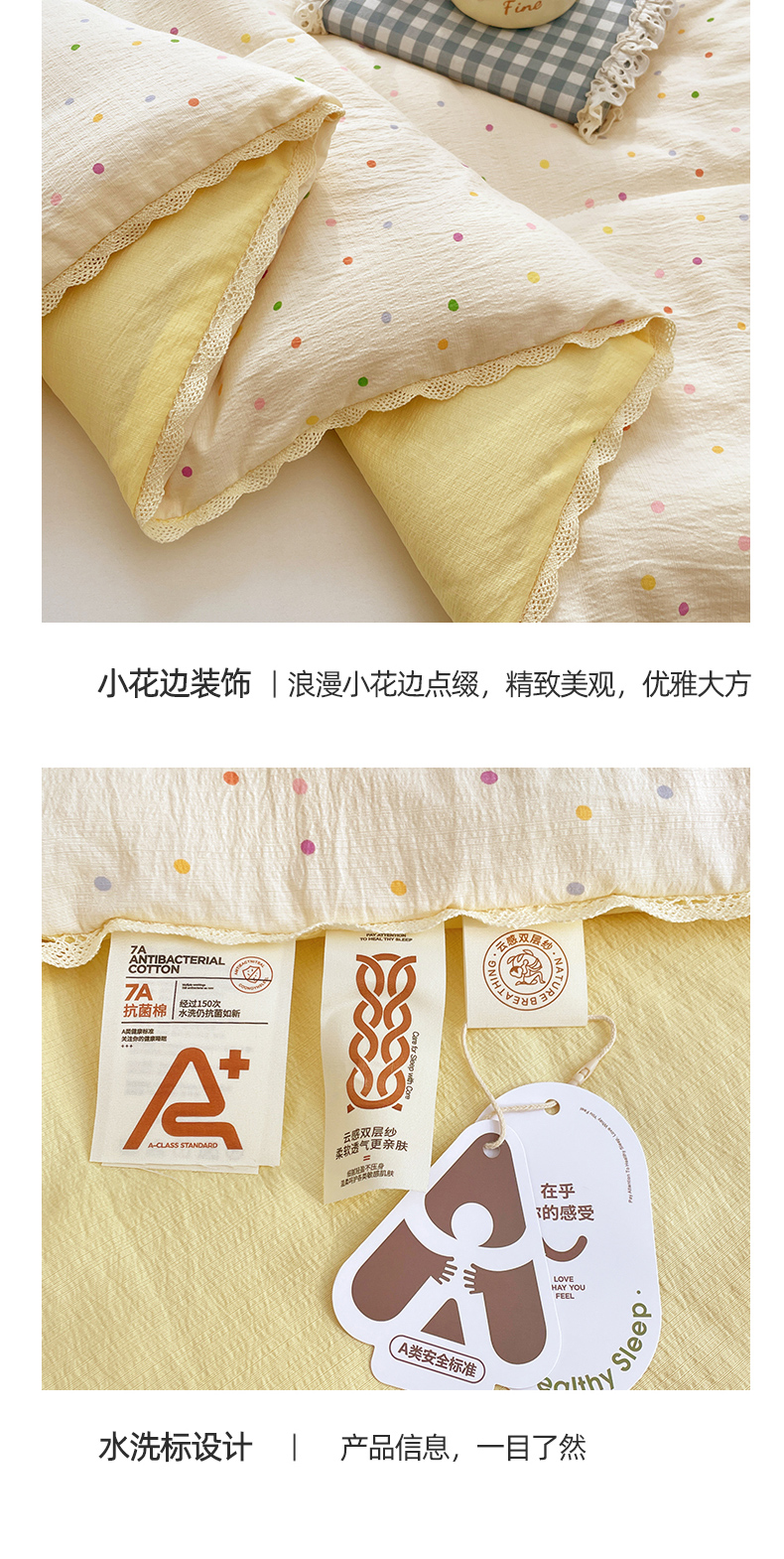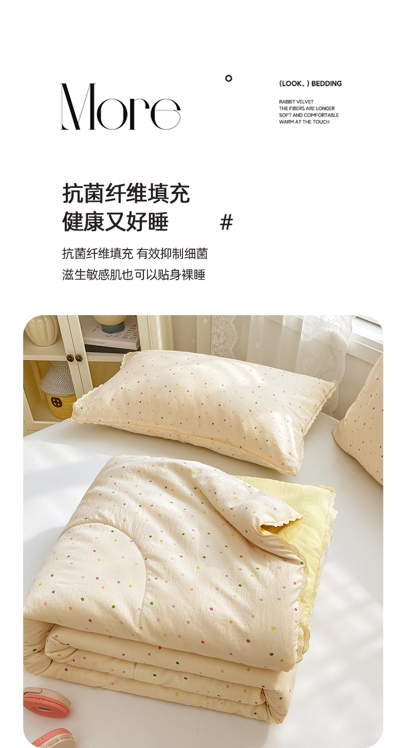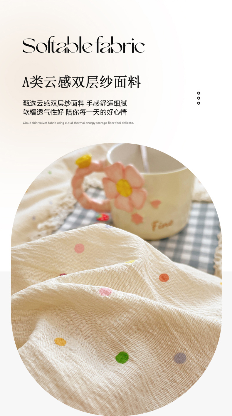 商品名称:优承佳生活馆 2025新款云感双层纱浪漫小花边抗菌夏被子被芯 彩色波点