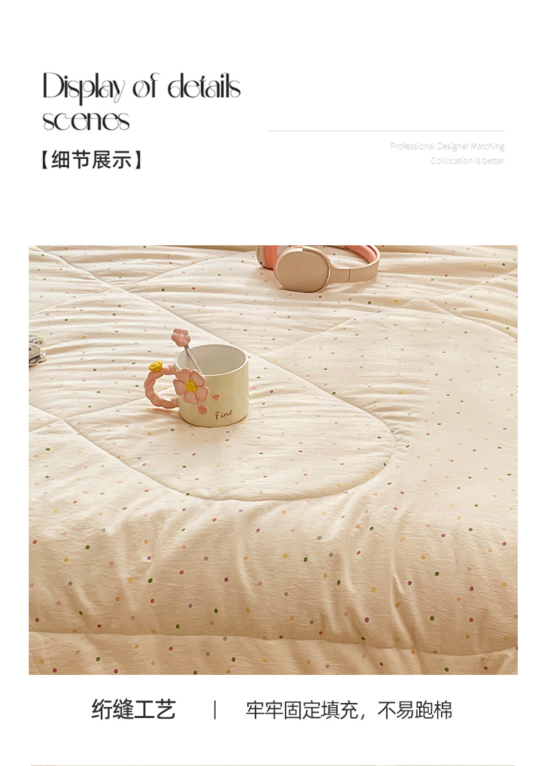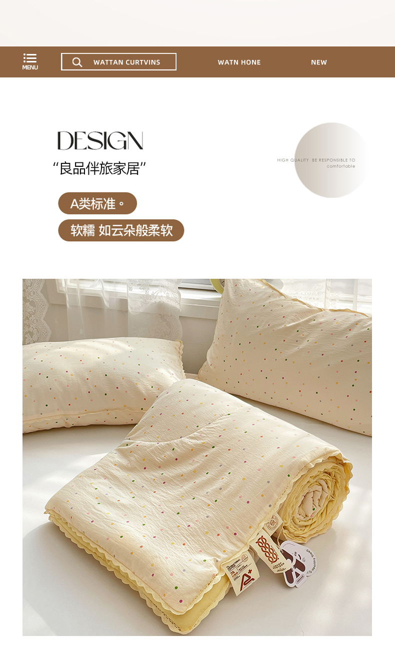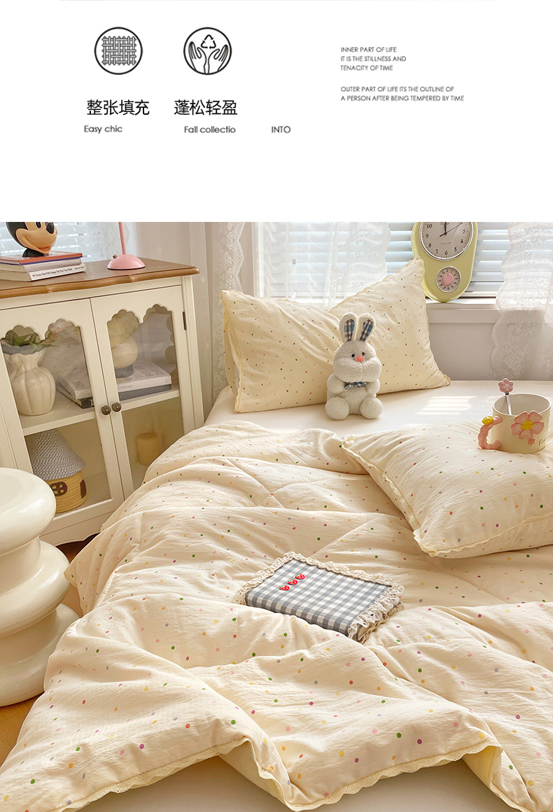 商品名称:优承佳生活馆 2025新款云感双层纱浪漫小花边抗菌夏被子被芯 彩色波点