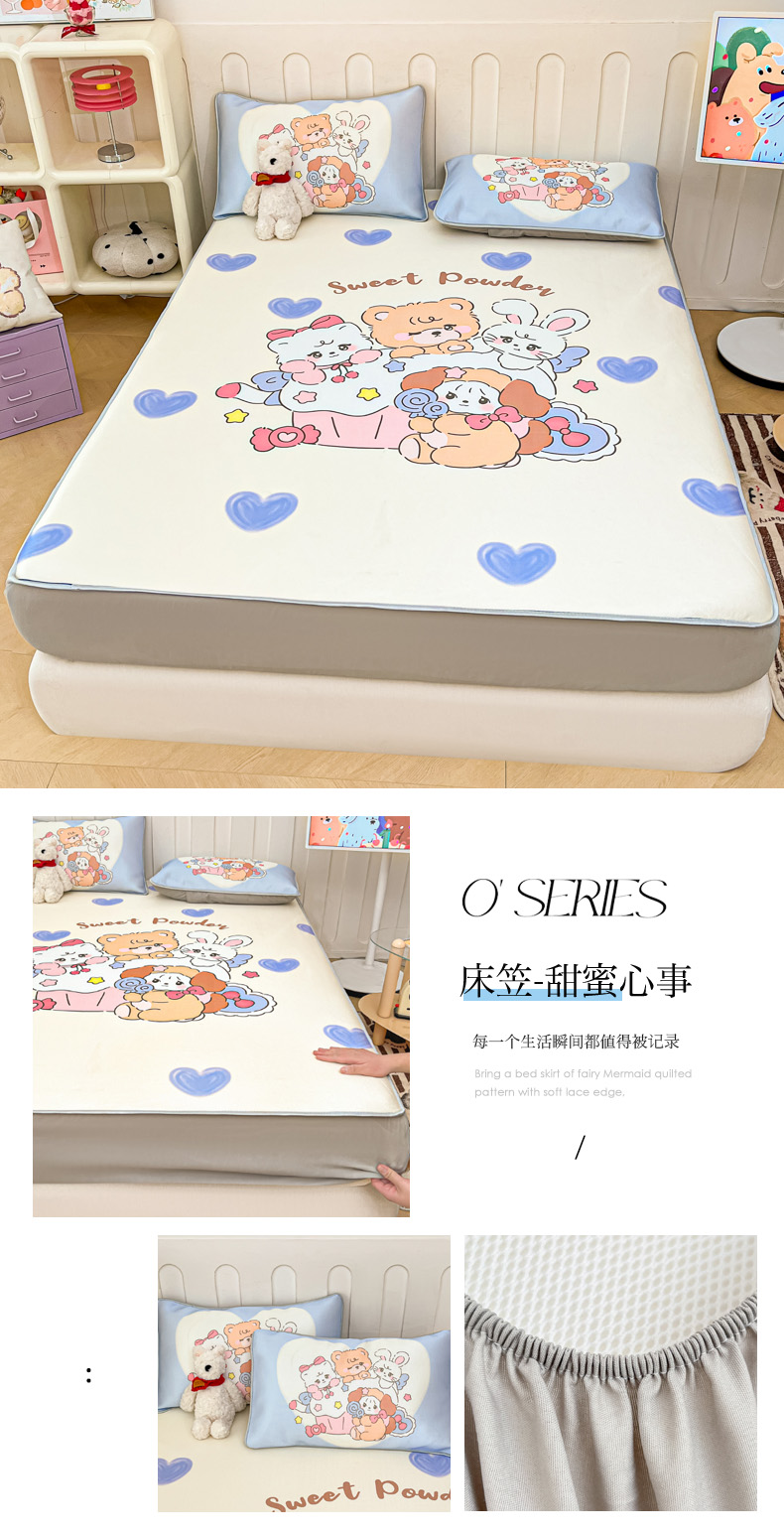 2025新款大版印花冰丝席床笠 床笠-甜蜜心事