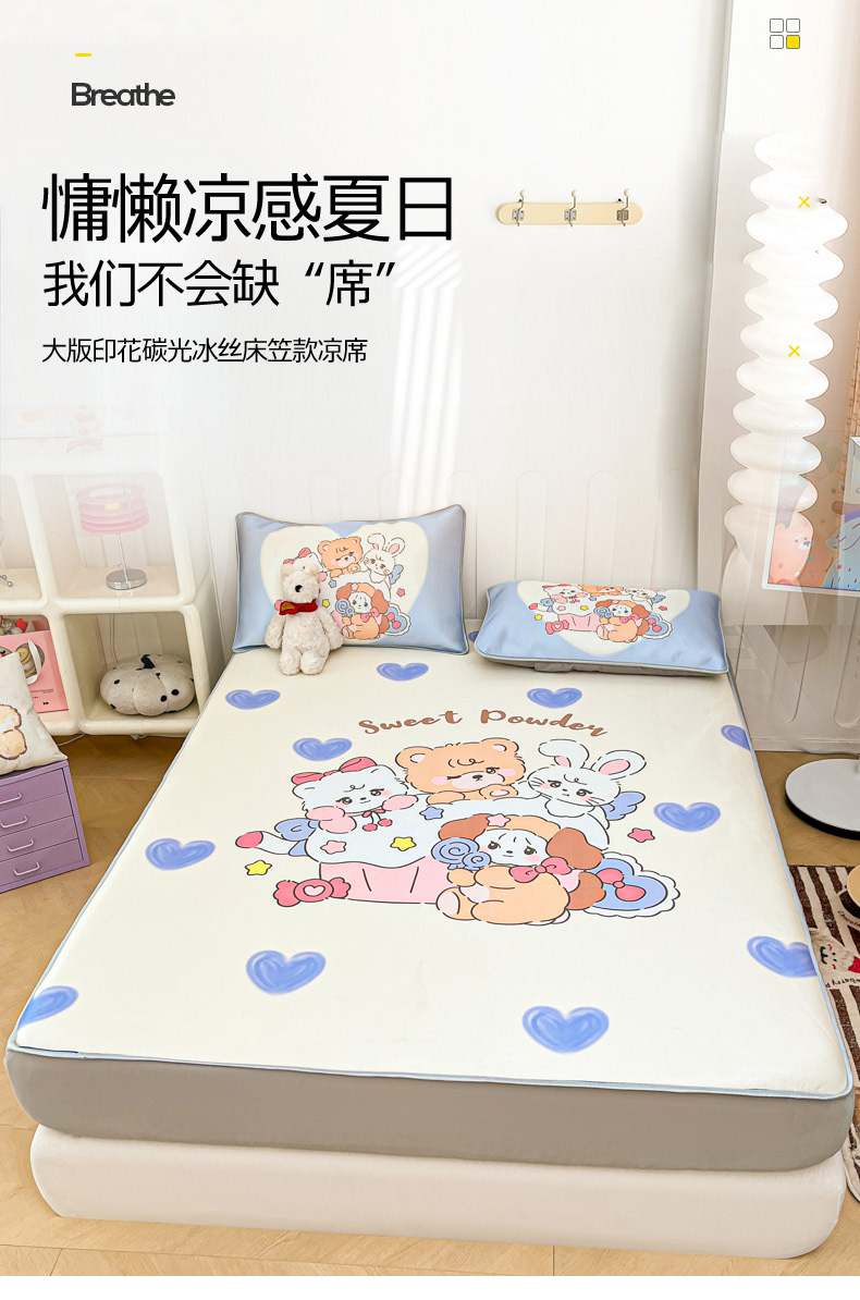 商品名称:2025新款大版印花冰丝席床笠 床笠-甜蜜心事