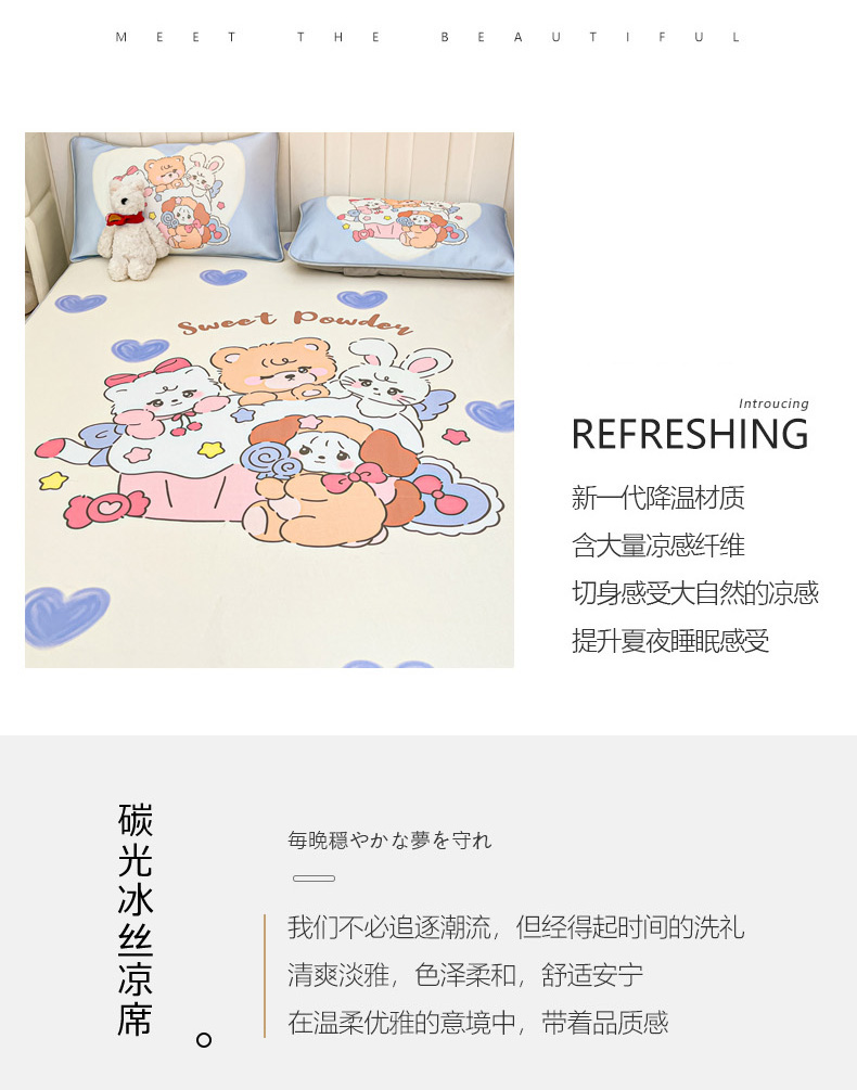 (总)柒月家居 2025新款小清新乳胶凉席夏被套件,爱心草莓,字母小熊,爱心小熊,粉色猫咪,格调,好伙伴,花季,萌宠派对,碎花小猫,星星腊肠狗,星星月亮