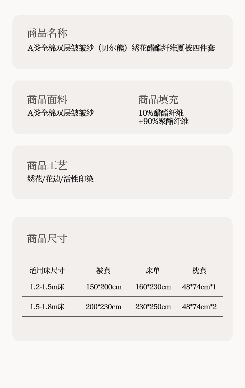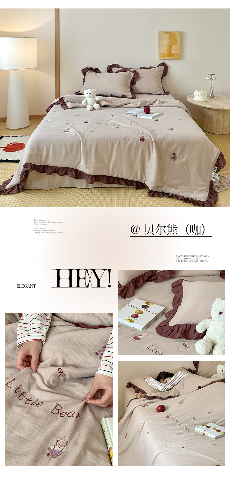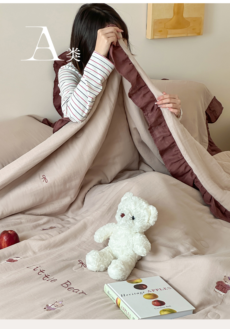 当前位置: 91家纺网 > 商品网购 > 床品套件 > 四件套 > 全棉普通四件套 > 卡巴伦2025新款A类全棉双层皱皱纱绣花娜雅醋酯纤维夏被四件套 贝尔熊(咖)