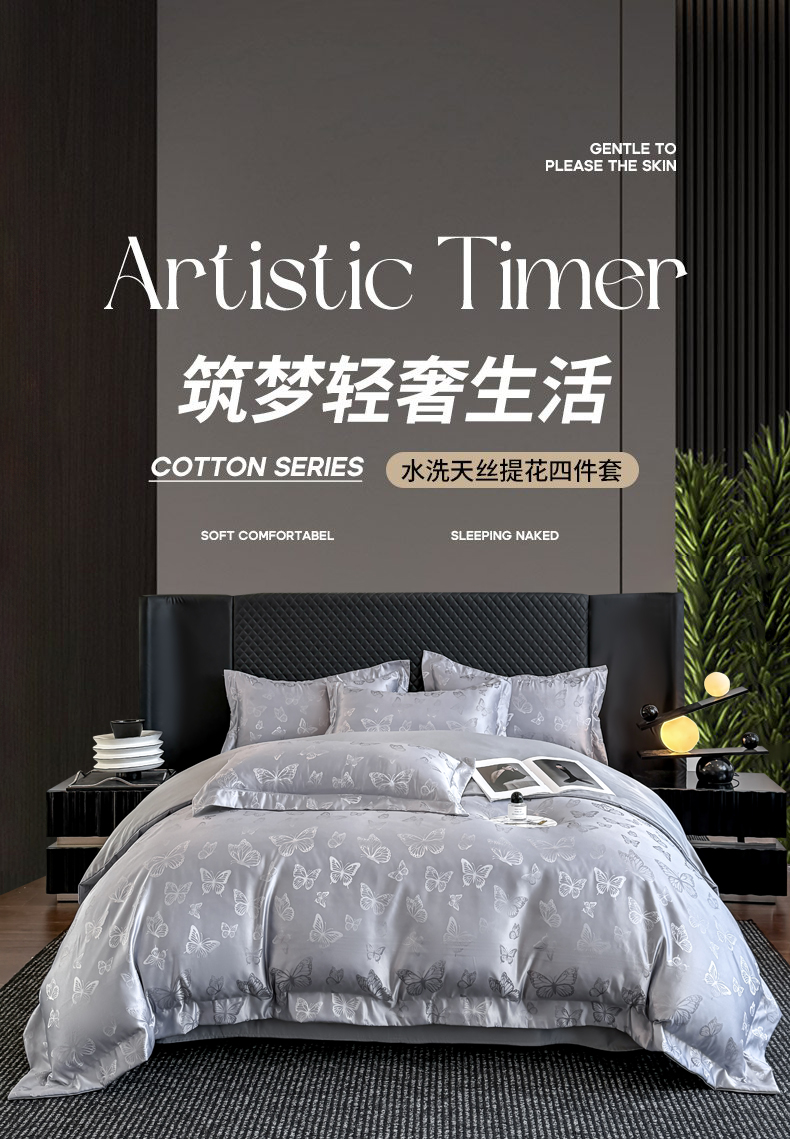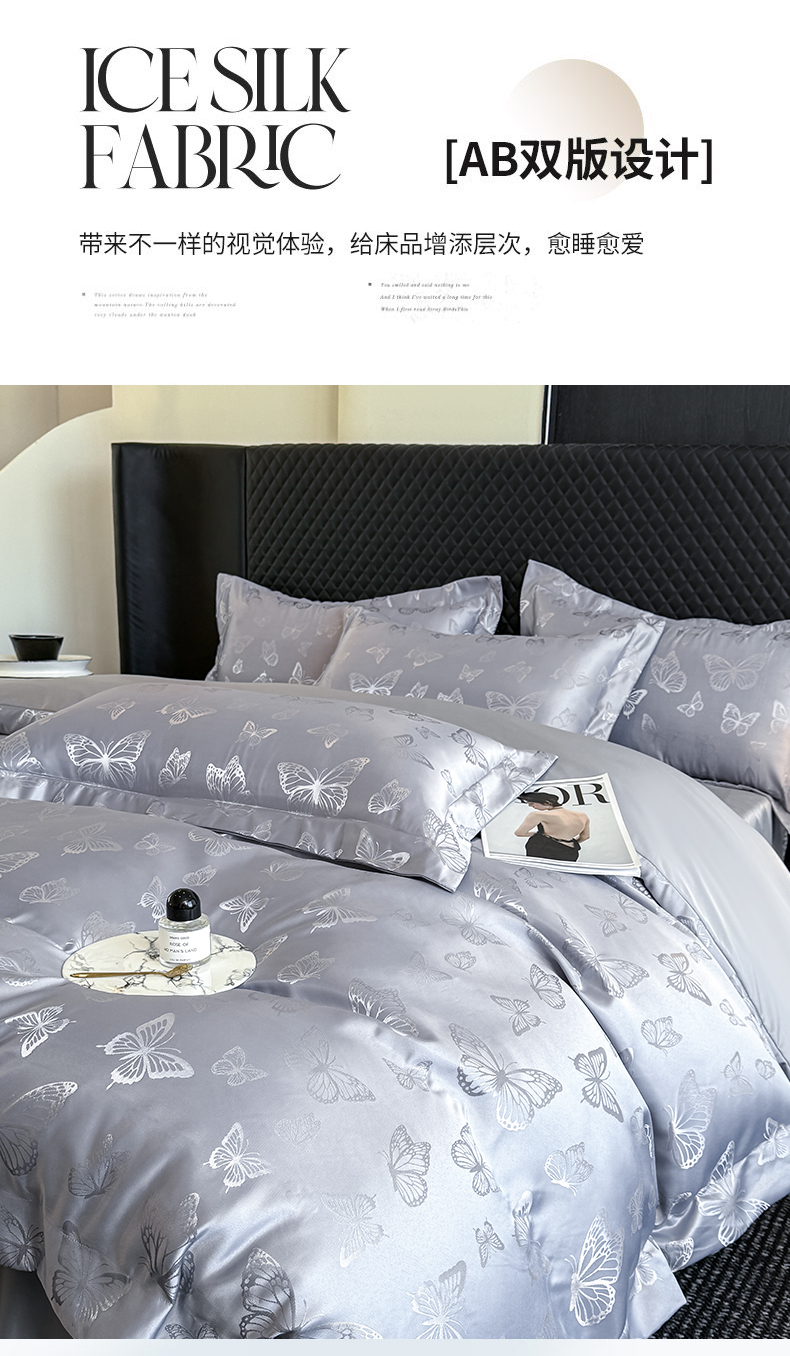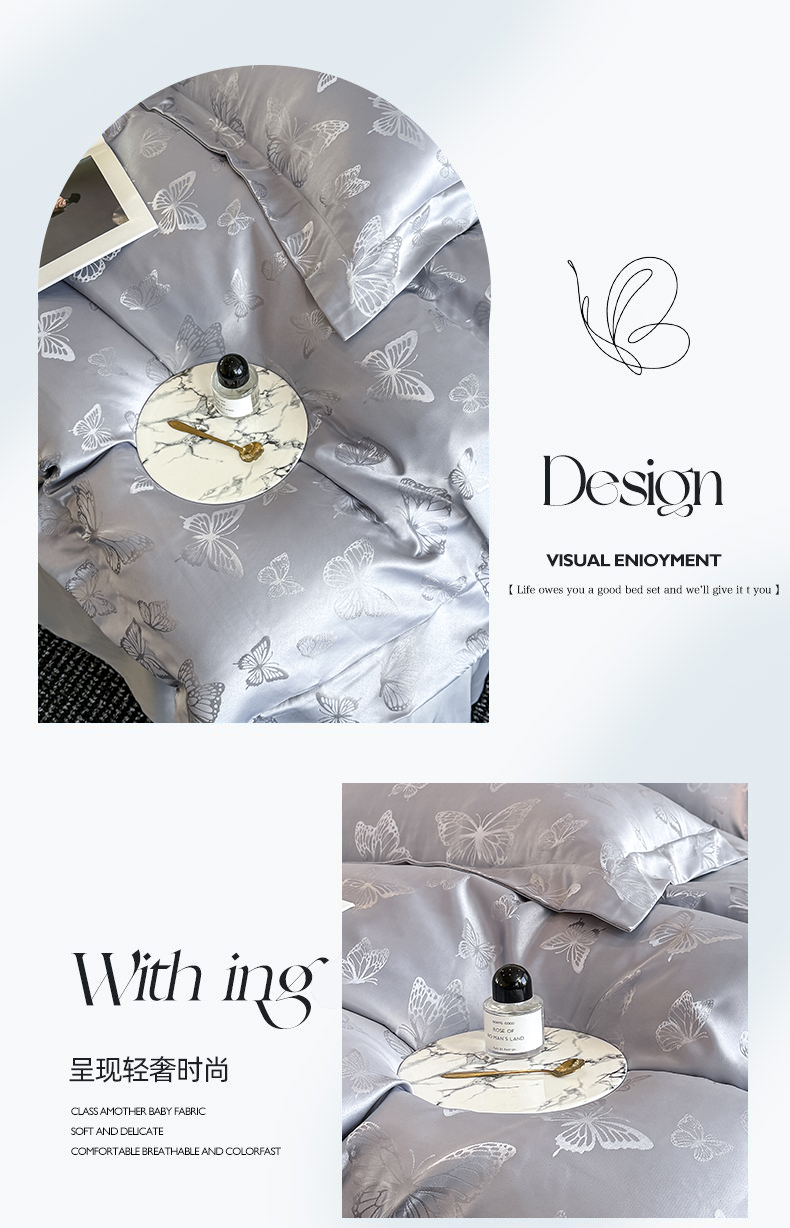 狂想家 2025新款高奢提花水洗天丝系列四件套 蝶之恋高级灰
