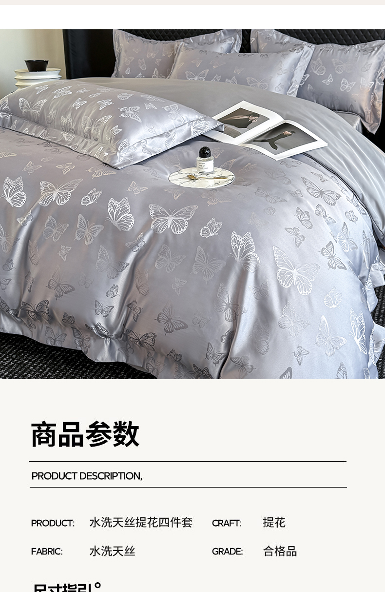商品名称:狂想家 2025新款高奢提花水洗天丝系列四件套 蝶之恋高级灰