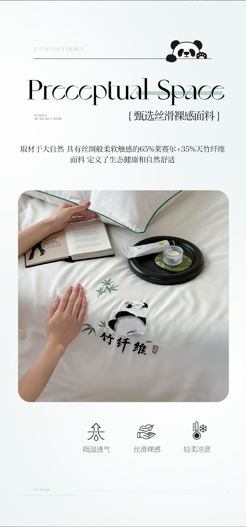 卡巴伦2025新款A类天竹刺绣蚕蛹蛋白纤维夏被四件套 熊猫-白冰