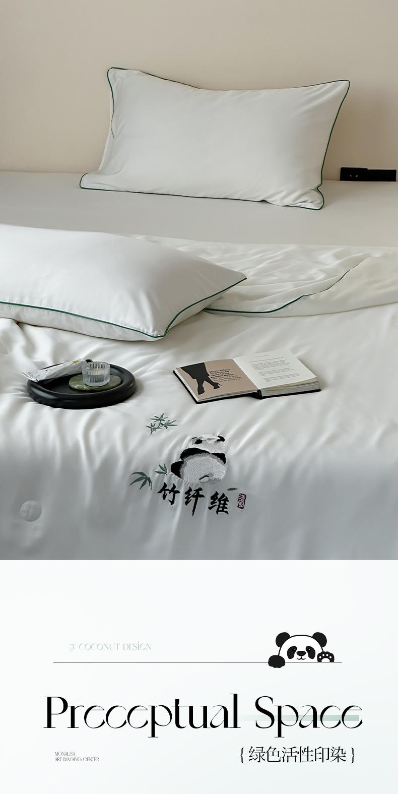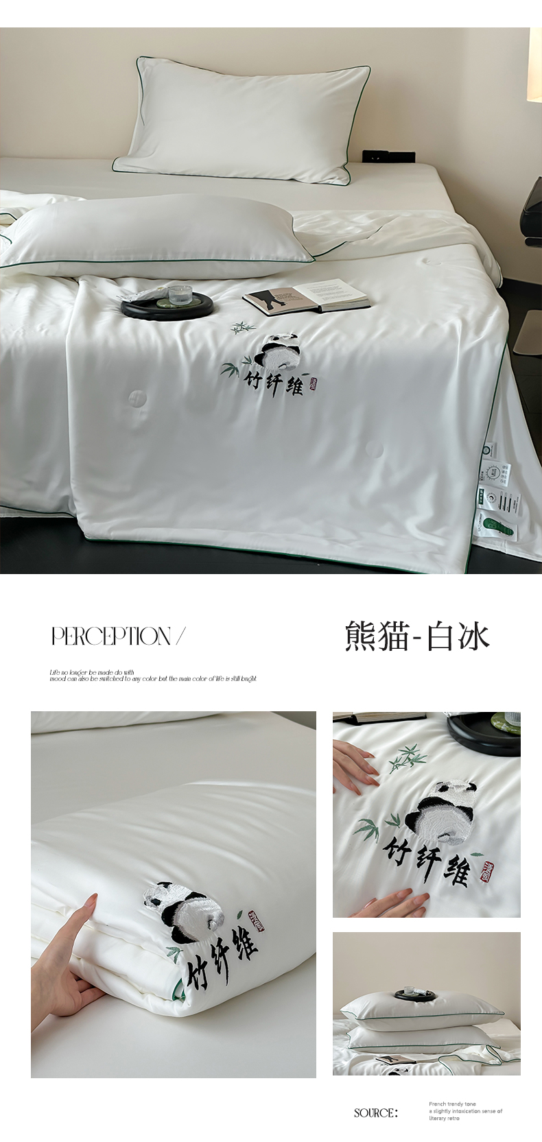 • 91家纺网 家纺一手货源 找家纺 卡巴伦2025新款A类天竹刺绣蚕蛹蛋白纤维夏被四件套 熊猫-白冰