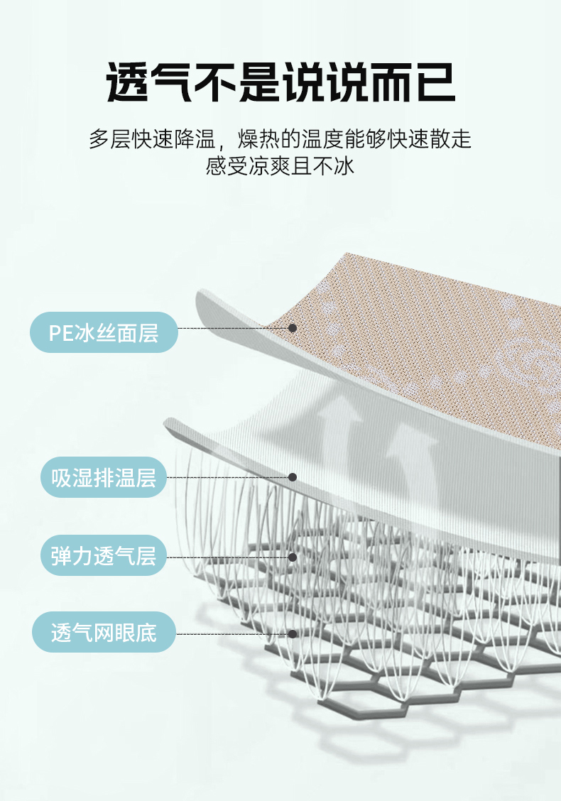 2023新款夏日冰点-冰藤双面席凉席藤席竹席冰丝席乳胶席,咖色,蓝色,绿色,香槟