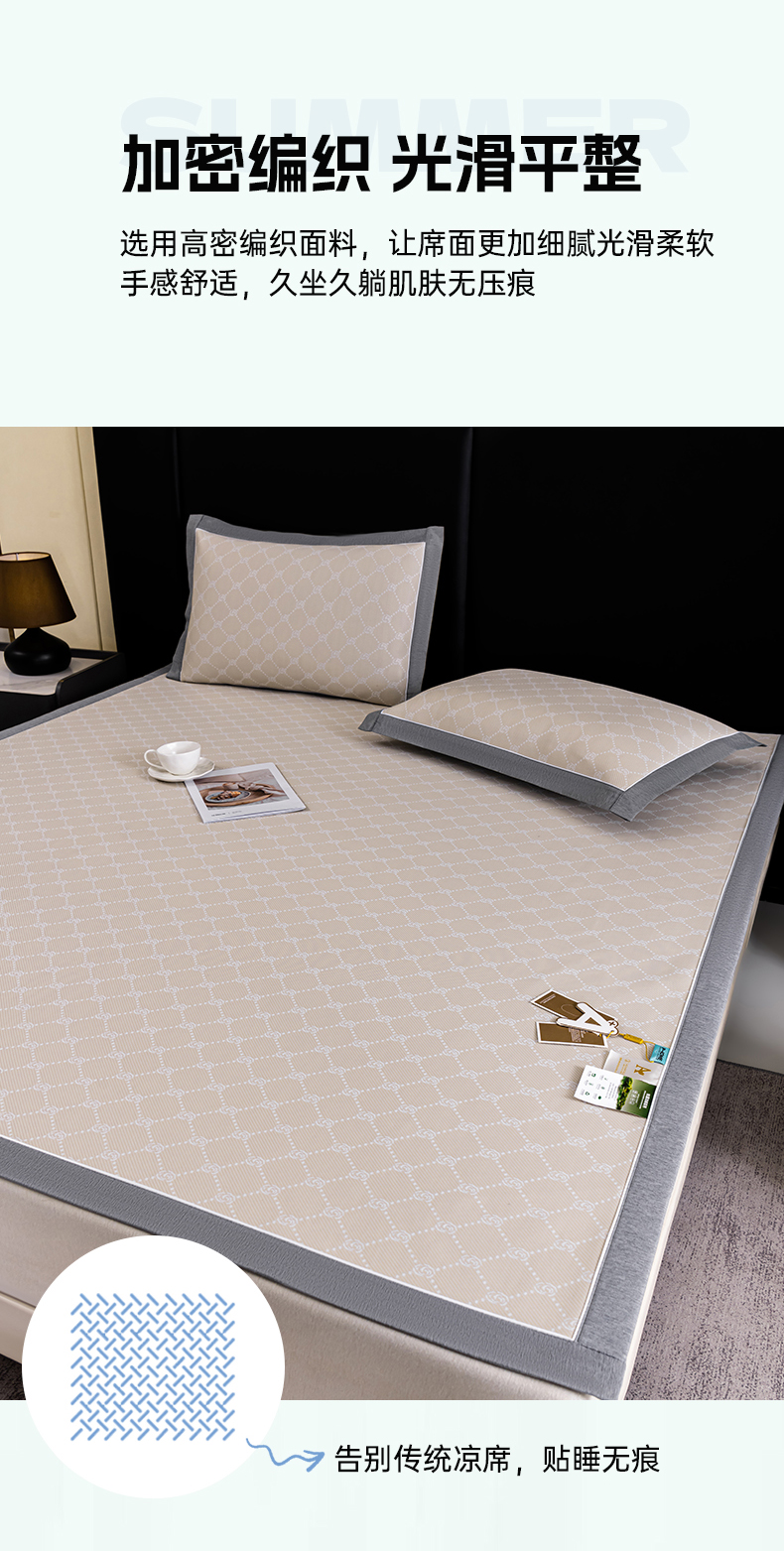 (总)2023新款超精密冰丝席-小斜纹系列-床笠款藤席凉席竹席,粉色,蓝色,绿色,银灰