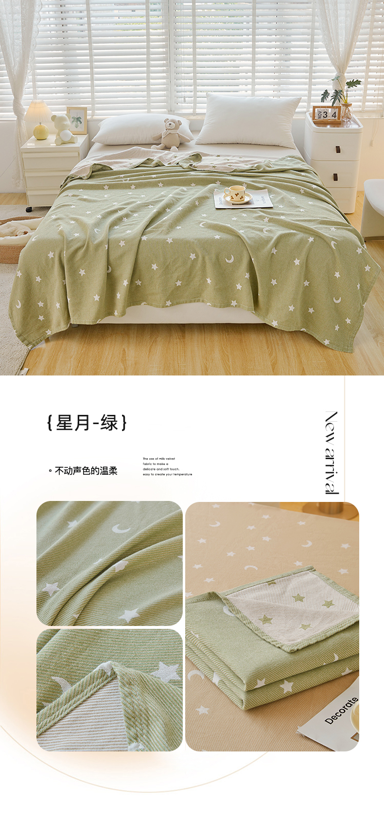 商品名称:悦然毛巾被2025新款全棉斜纹提花毛巾被 星月-绿