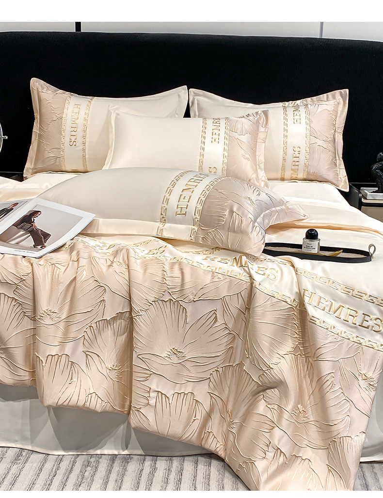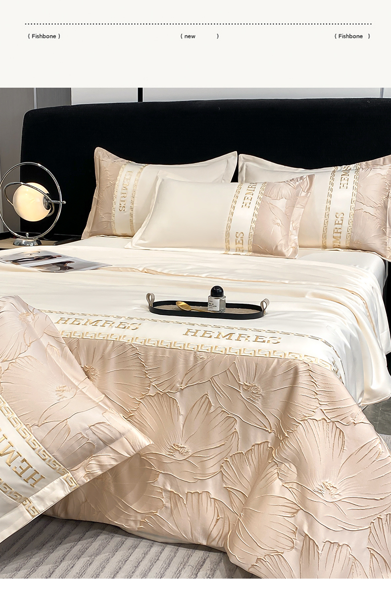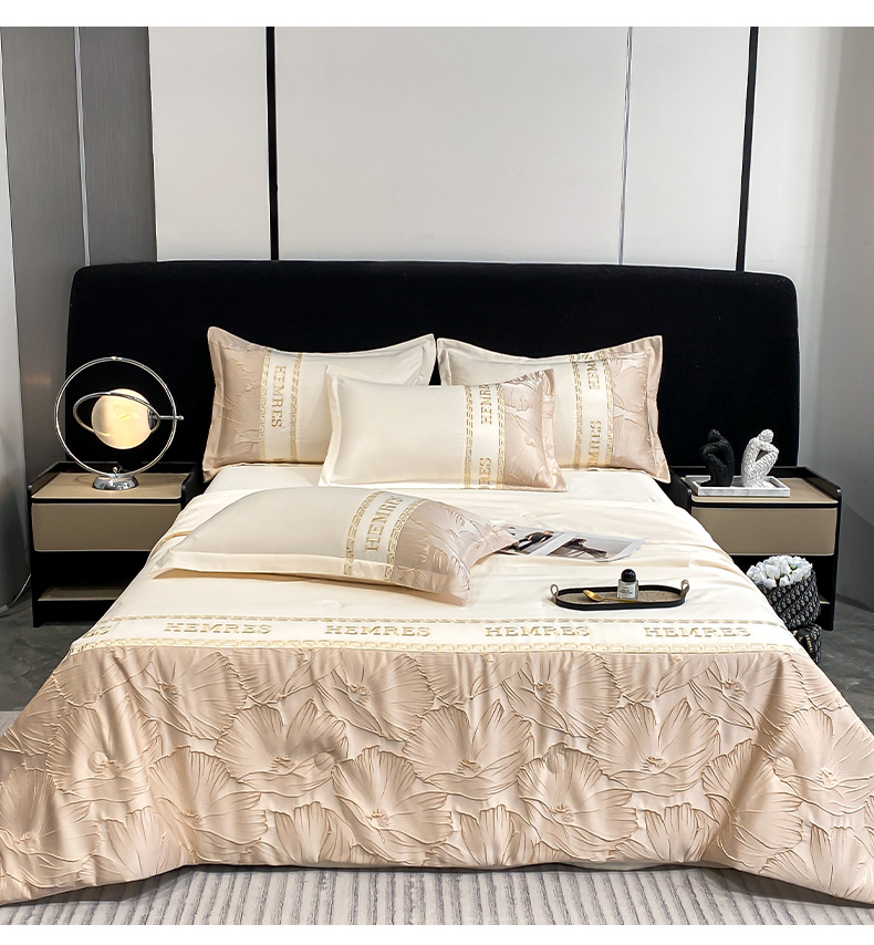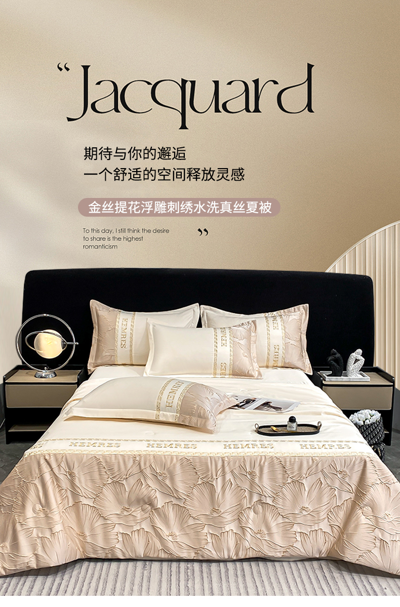子曰 2025新款金丝提花浮雕刺绣水洗真丝夏被四件套夏凉被空调被 花语-米白