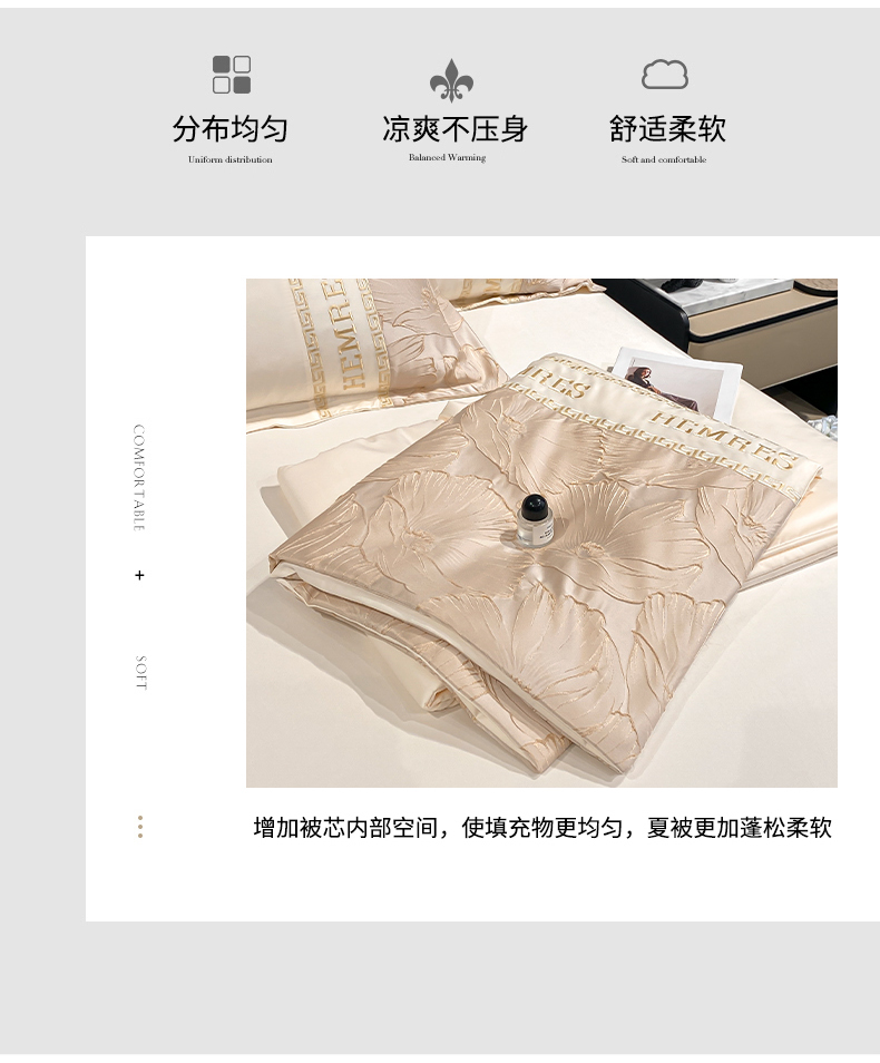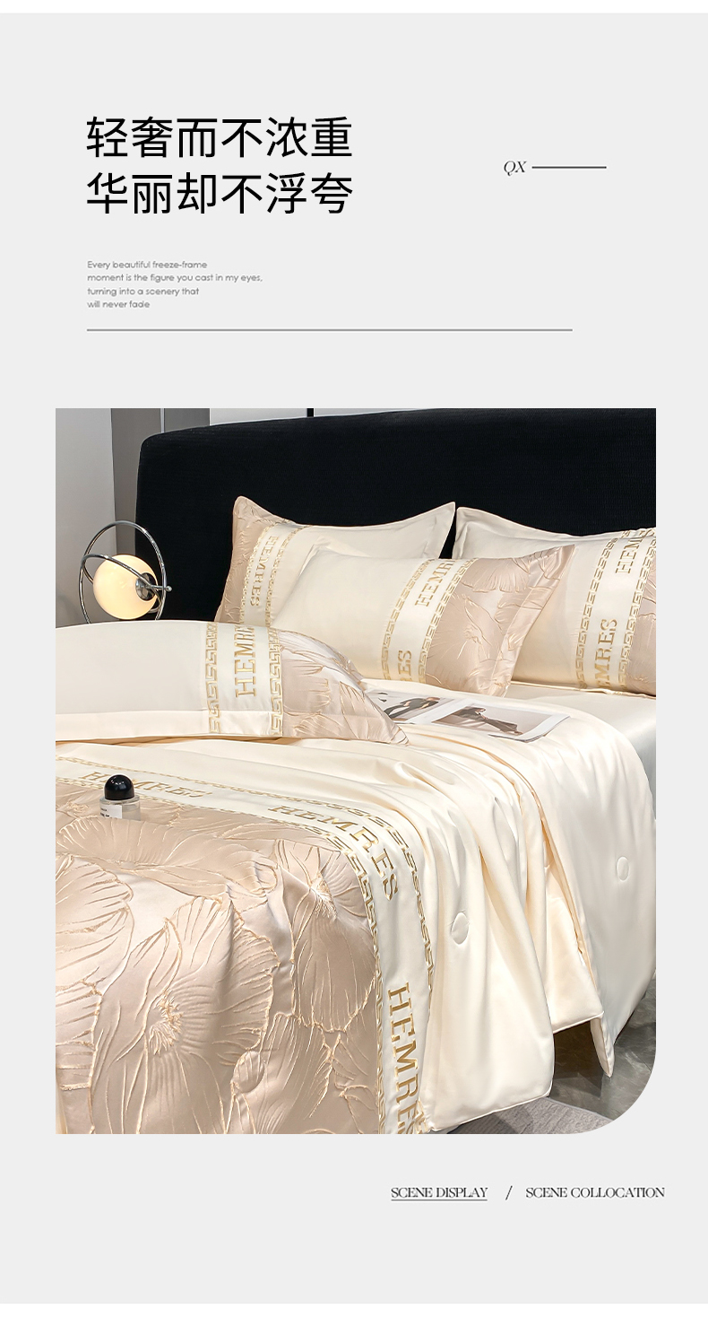 商品名称:子曰 2025新款金丝提花浮雕刺绣水洗真丝夏被四件套夏凉被空调被 花语-米白