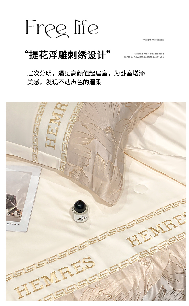 (总)子曰 2025新款雕花加厚牛奶绒宽边工艺款四件套-小香风,小香风-咖,小香风-粉,小香风-绿,小香风-米白,小香风-紫