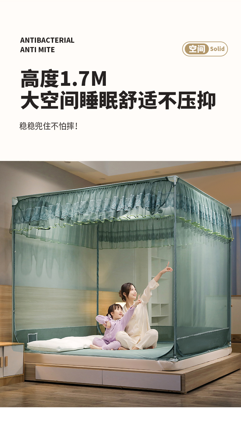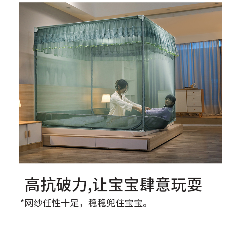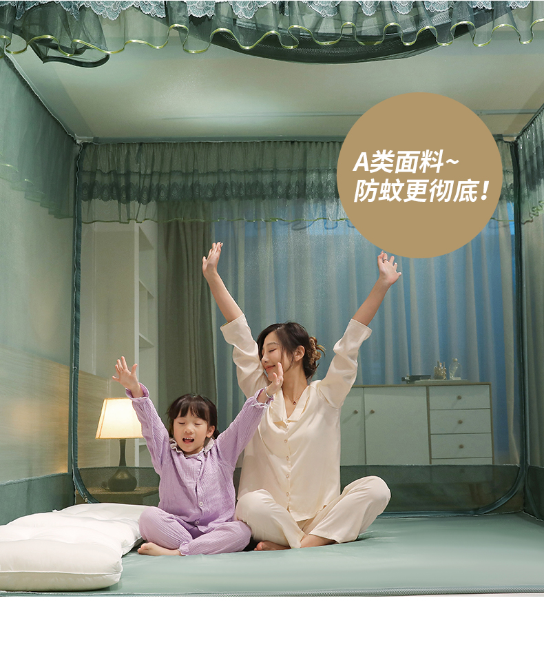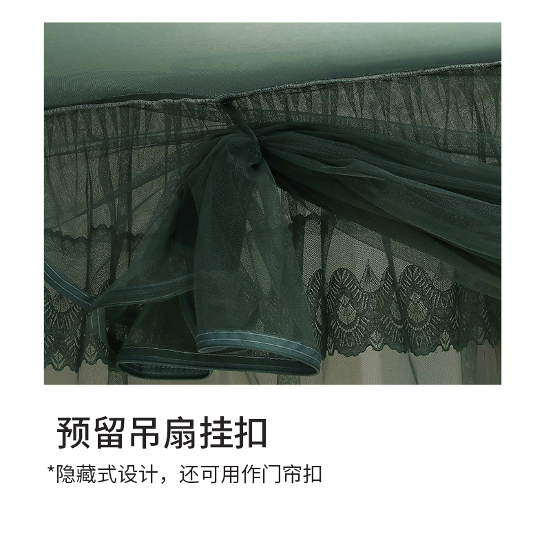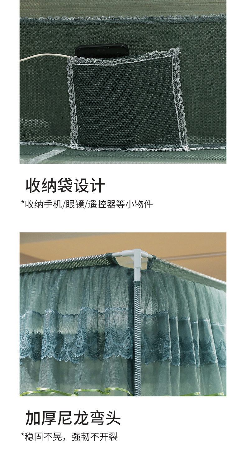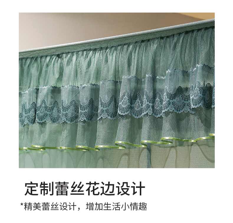 (总)夏彩 2025新款蕾丝U型防摔坐床蚊帐-88630,绿雅灰,藕玉色,香槟色
