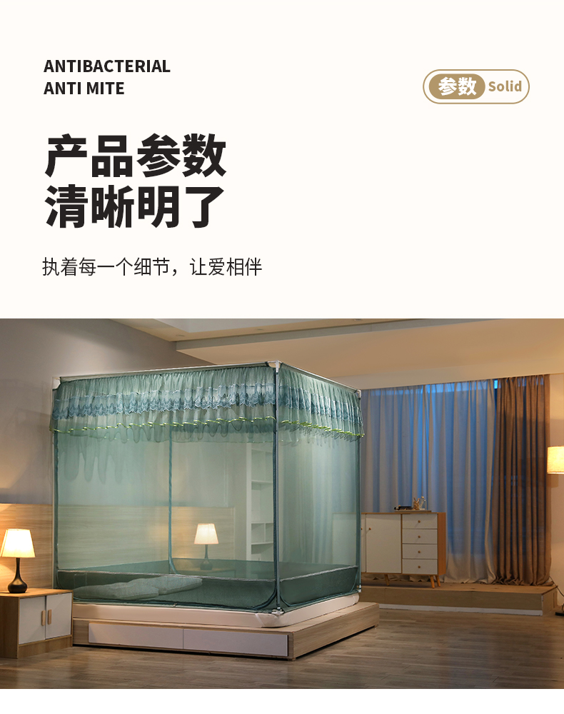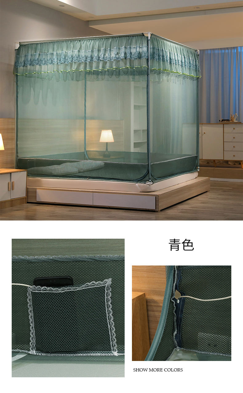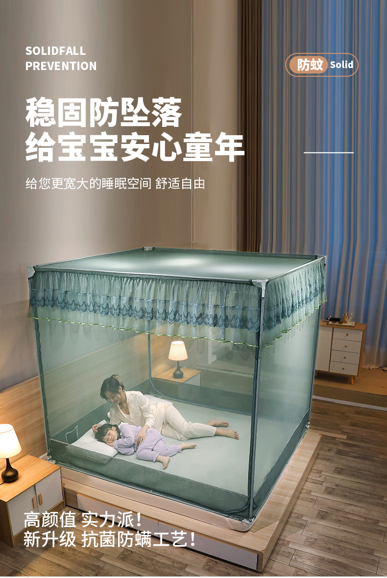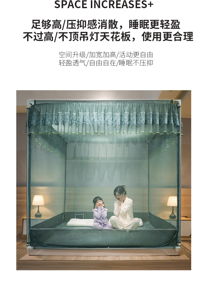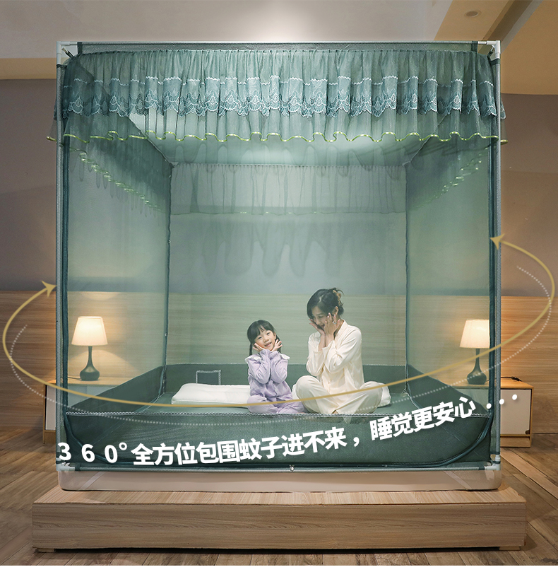 (总)夏彩 2025新款蕾丝U型防摔坐床蚊帐-88630,绿雅灰,藕玉色,香槟色