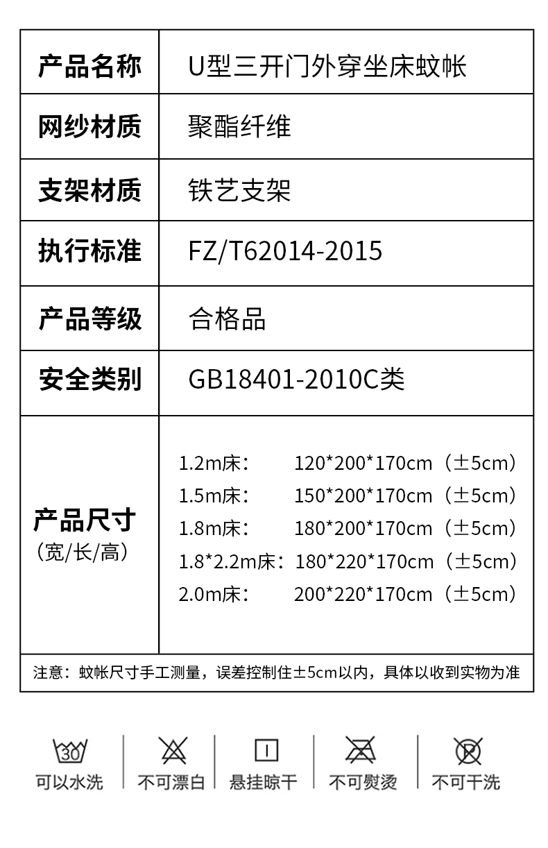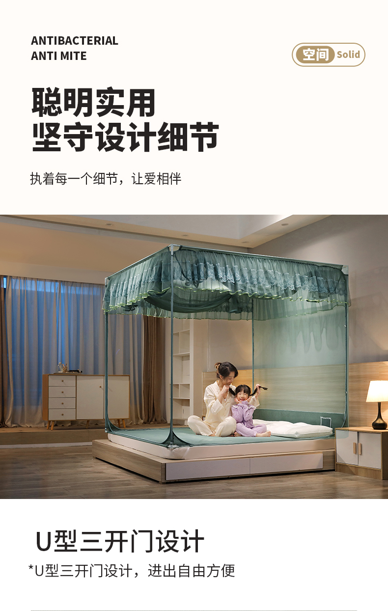 商品名称:夏彩 2025新款U型三开门外穿坐床蚊帐系列-货号88538/88539 88538海藻绿
