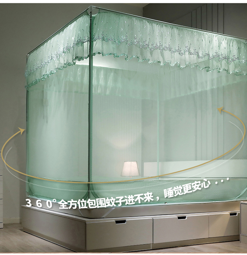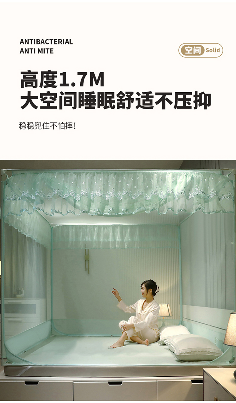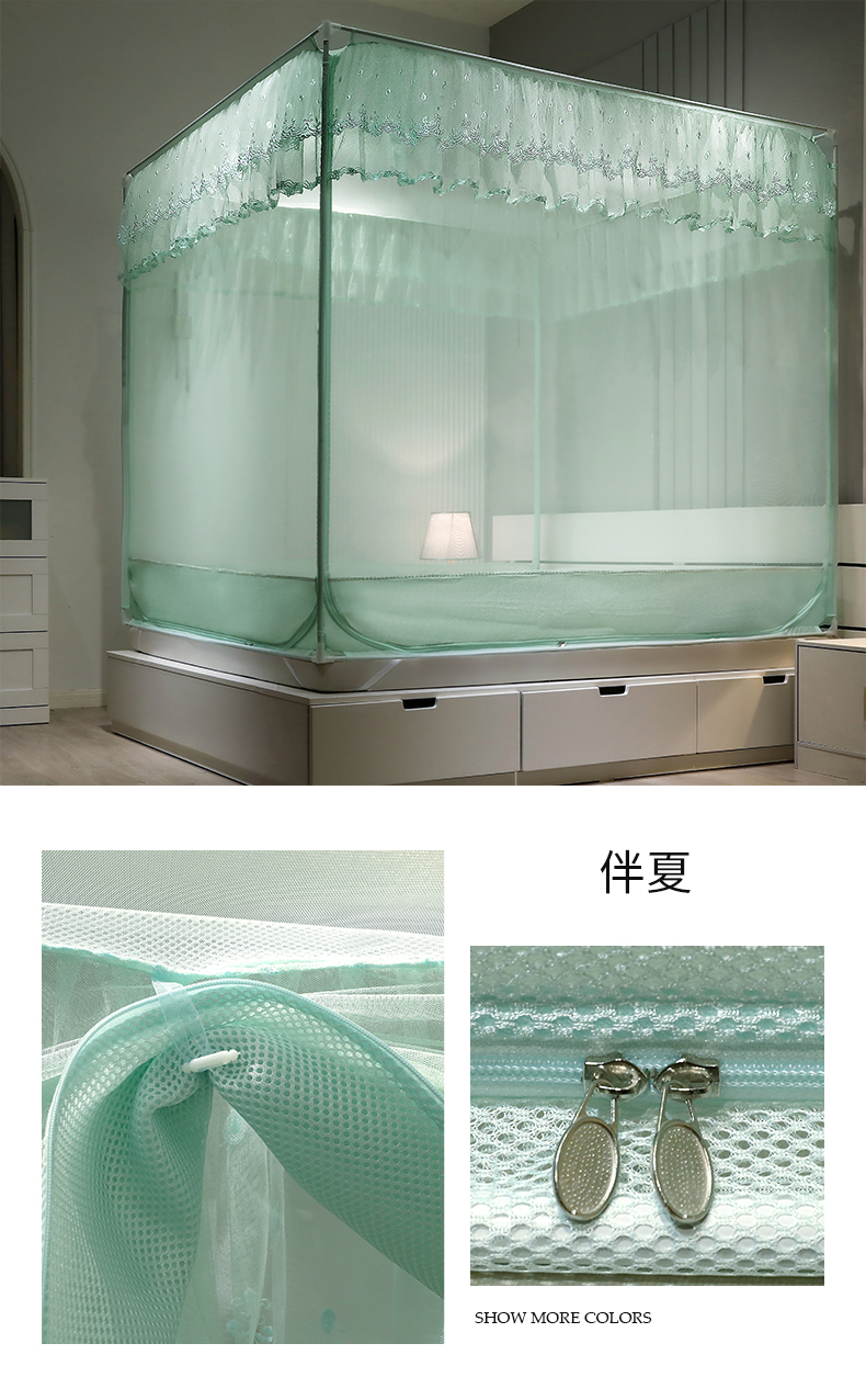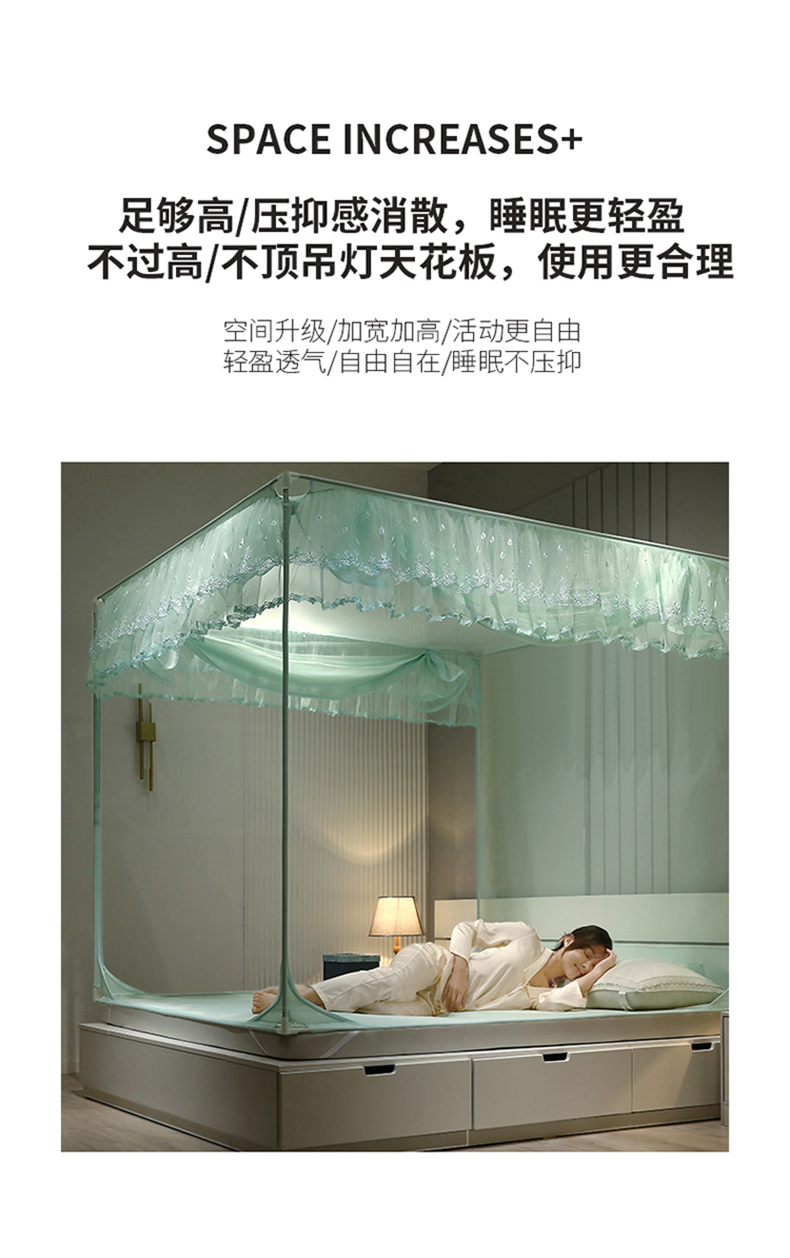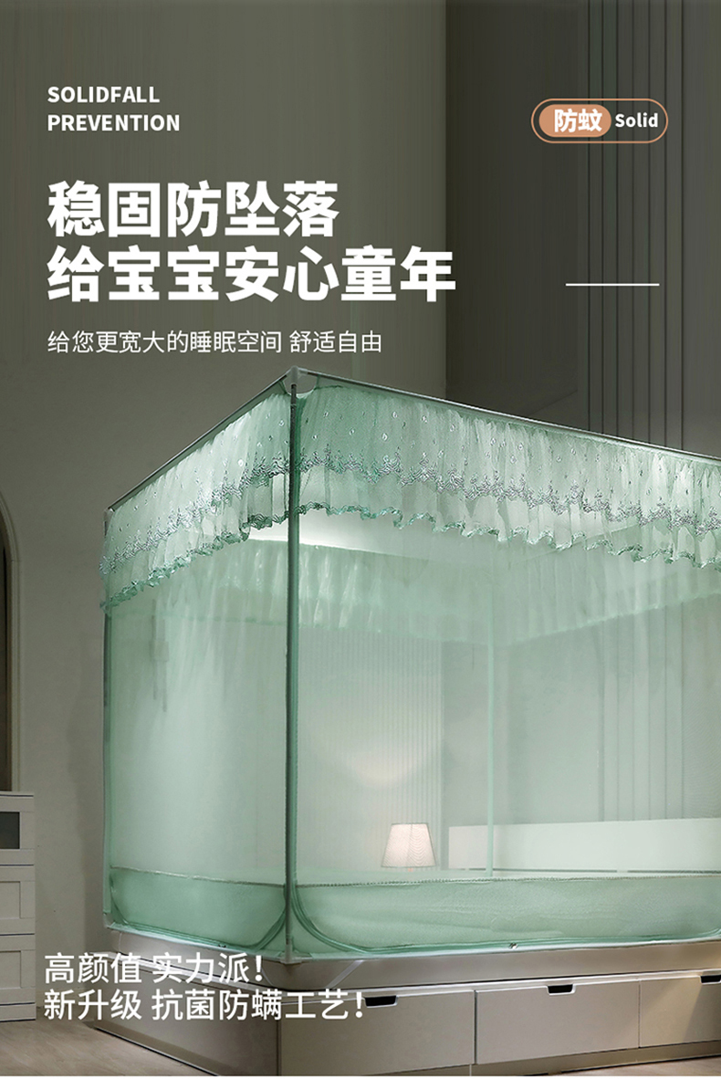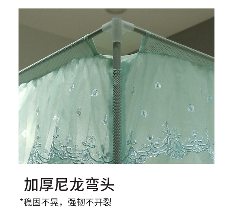 (总)夏彩 2025新款蕾丝U型防摔坐床蚊帐-88630,绿雅灰,藕玉色,香槟色