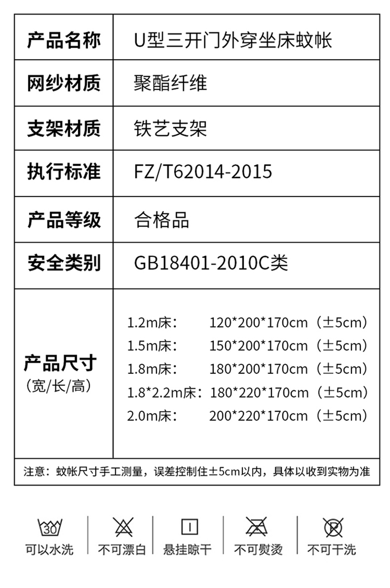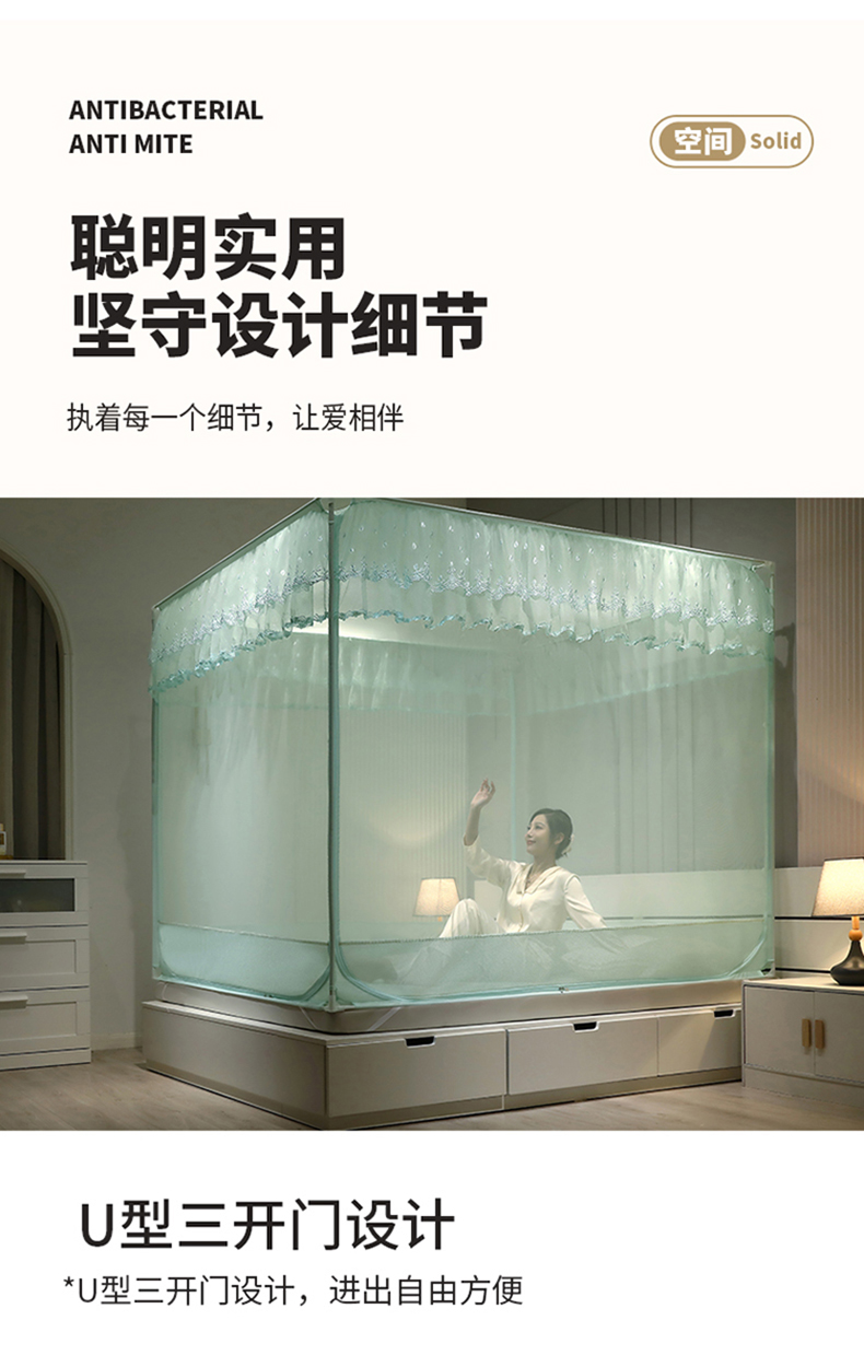 商品名称:夏彩 2025新款U型三开门外穿坐床蚊帐系列-货号88538/88539 88539水绿